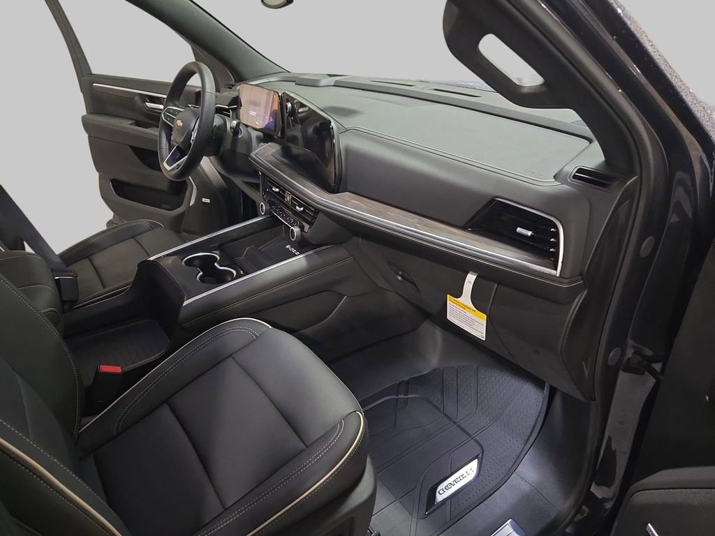 Meet the 2026 Chevrolet Tahoe Premier in sleek Black — a full‑size SUV that blends bold capability with first‑class comfort. Built to protect and perform with standard 4WD, ABS, traction control and limited‑slip differential, plus a comprehensive suite of airbags and vehicle stability systems. Slide into heated leather seats and a heated steering wheel, start it remotely with climate control and enjoy keyless entry, premium audio with subwoofer and room for seven. Backed by Chevy’s 36/36 basic, 60/60 powertrain and 72/100k rust warranties — stop by for a test drive and see why the Tahoe Premier is the complete package.
