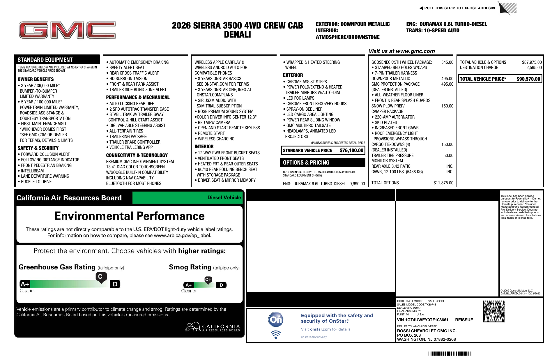 Introducing the 2026 GMC Denali in striking Dark Gray with a rich Brown, luxury-appointed interior — where rugged capability meets refined comfort. The Denali delivers upscale styling with its signature grille and chrome accents, premium interior craftsmanship, advanced connectivity and driver-assist technologies, and integrated trailering tools for confident towing. Backed by basic, powertrain and rust warranties for added peace of mind, this pickup is built for both workdays and weekends. Stop in or call today to schedule a test drive and experience Denali’s difference.