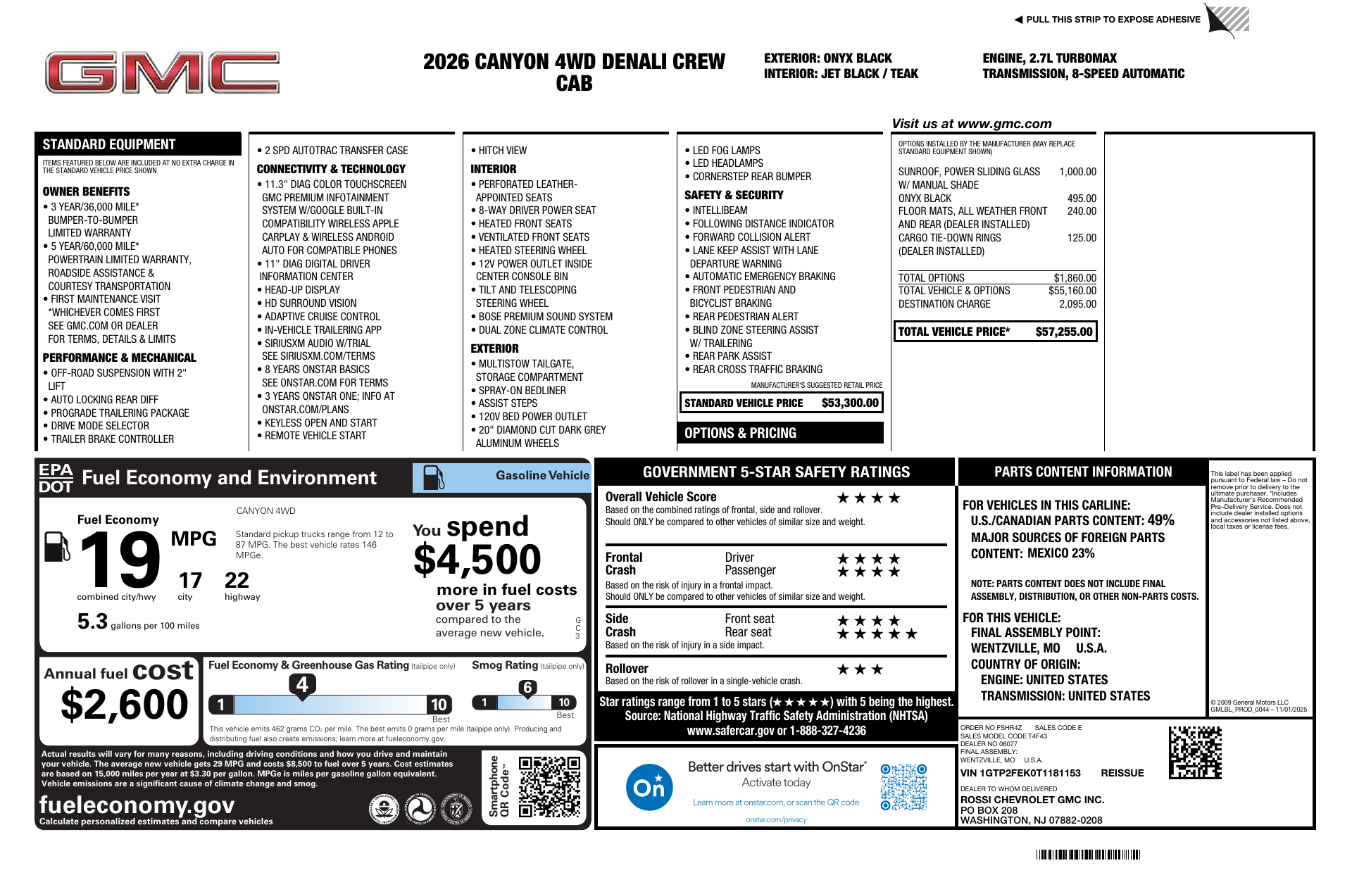 Turn heads in the 2026 Denali — Black on Black, bold and refined. Built for confidence, it features standard ABS/4-wheel ABS and driver/passenger airbags, R&P steering and a suspension setup (independent front, live rear) that balances ride comfort with on-road composure. Riding on 275/60R20 tires with 10.5" ground clearance, it offers a commanding presence plus roomy accommodations for five—45.2" front legroom and generous shoulder and hip room throughout. Backed by strong coverage (36 months/36k basic, 60 months/60k powertrain, 72 months/100k rust), this Denali is ready to impress — come test drive one today.