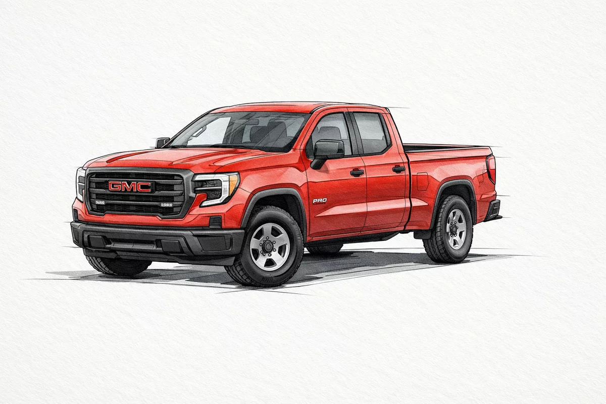 Turn heads in the striking Red 2026 GMC Sierra 1500 PRO — a rugged, ready-to-work pickup that pairs bold style with everyday comfort. With standard 4WD, full-size spare, heavy-duty leaf rear suspension and 265/70R17 tires, it’s built to tackle tough jobs. Drive with confidence thanks to ABS, traction control, vehicle stability and a full suite of airbags, plus convenient tech like keyless entry, electronic parking aid, dual-zone climate controls and cruise control. Spacious front and rear room, heated exterior mirrors and industry-leading warranties (3 years/36k basic, 5 years/60k powertrain, 6 years/100k rust) seal the deal. Ready to take one for a spin? Stop by today and experience the Sierra 1500 PRO for yourself.