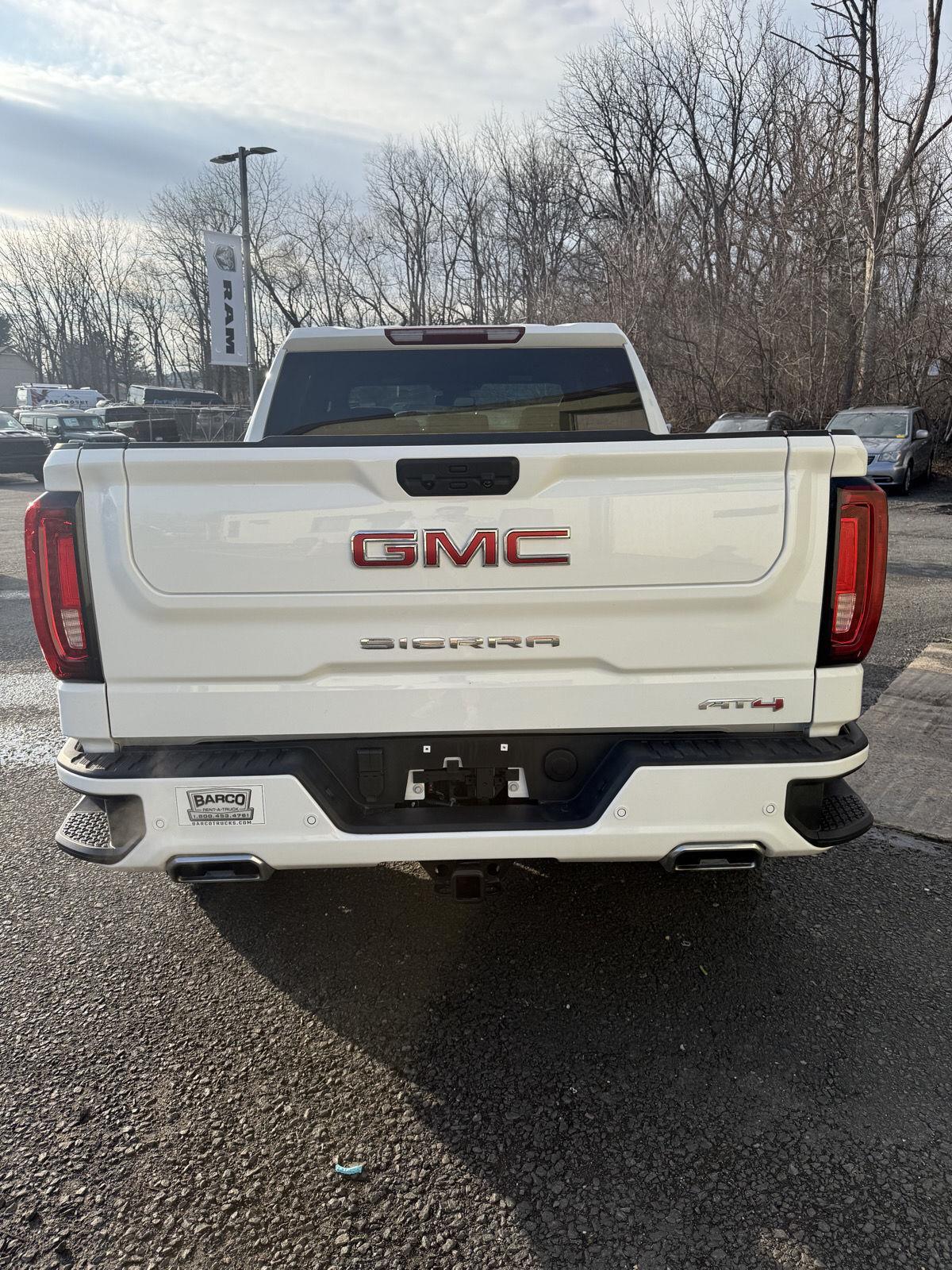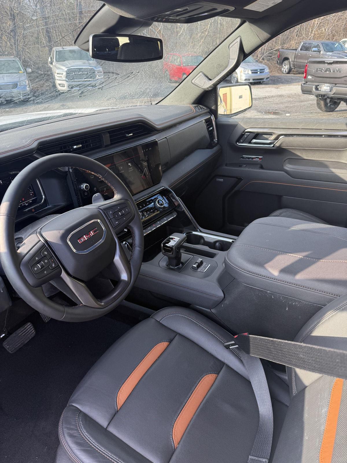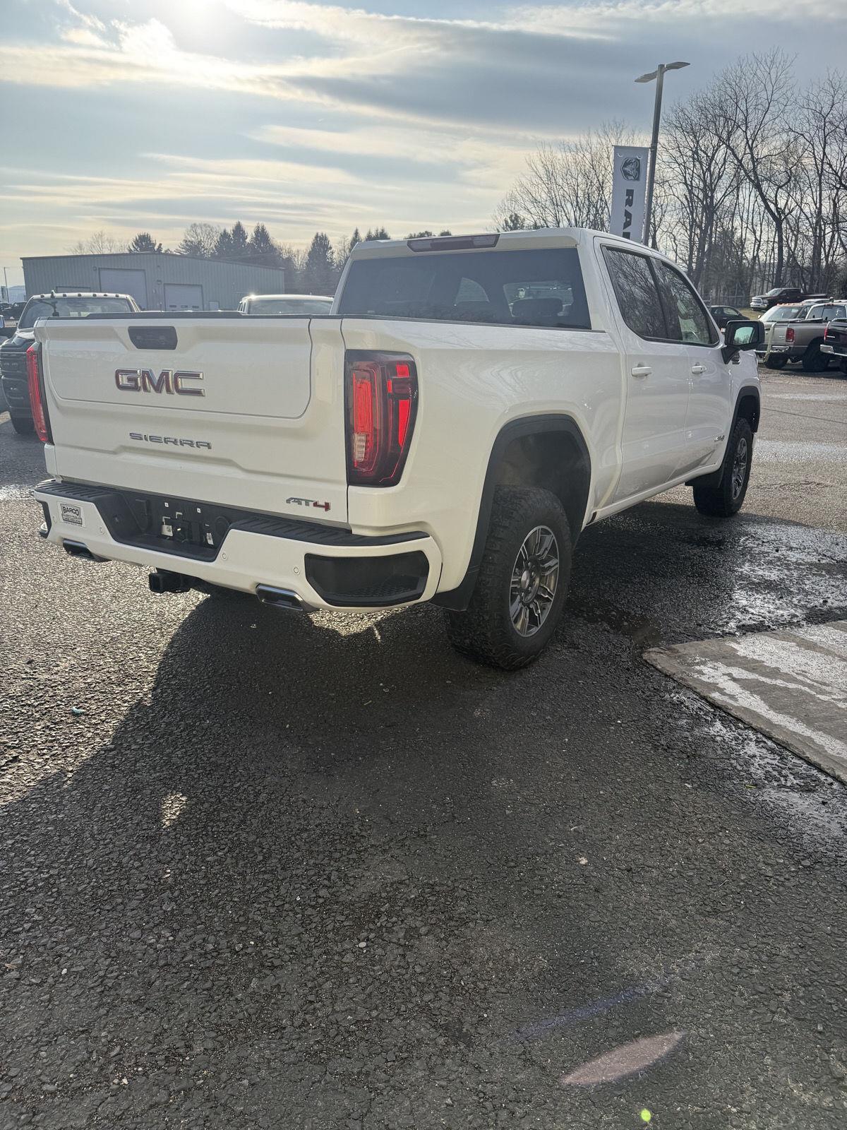 Meet the 2025 GMC Sierra 1500 AT4 — a head-turning White exterior with a sleek Black leather interior that blends rugged capability with premium comfort. Built to go anywhere, the AT4’s 4WD, locking differential, 275/60R20 tires and 11.1" ground clearance conquer rough roads while stability and traction control keep you confident in every condition. Step inside to heated leather seats, a heated leather steering wheel, dual-zone climate control and intuitive steering-wheel controls — plus keyless entry and remote start to make life easier. Safety is comprehensive with multiple airbags, ABS and electronic brake assistance, and you’ll drive with peace of mind thanks to strong factory warranties. Ready for work, play or both — call today to see and drive this Sierra AT4.