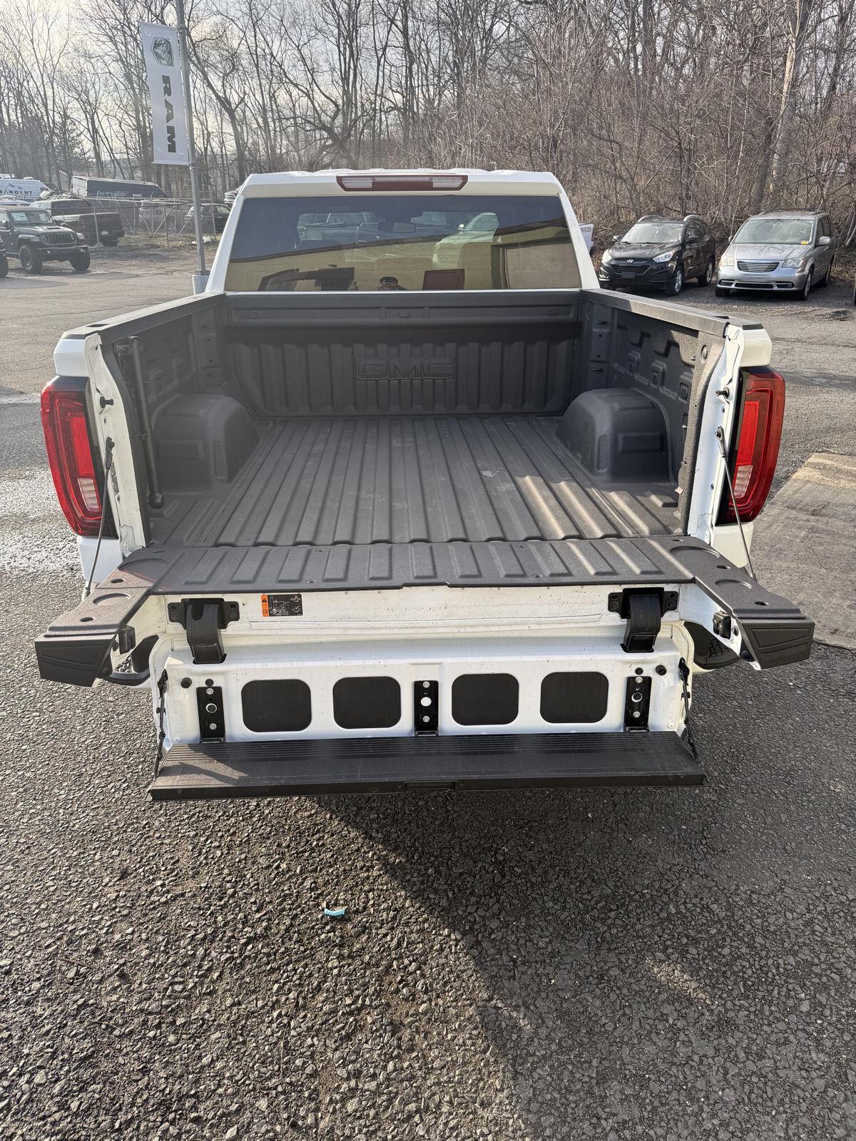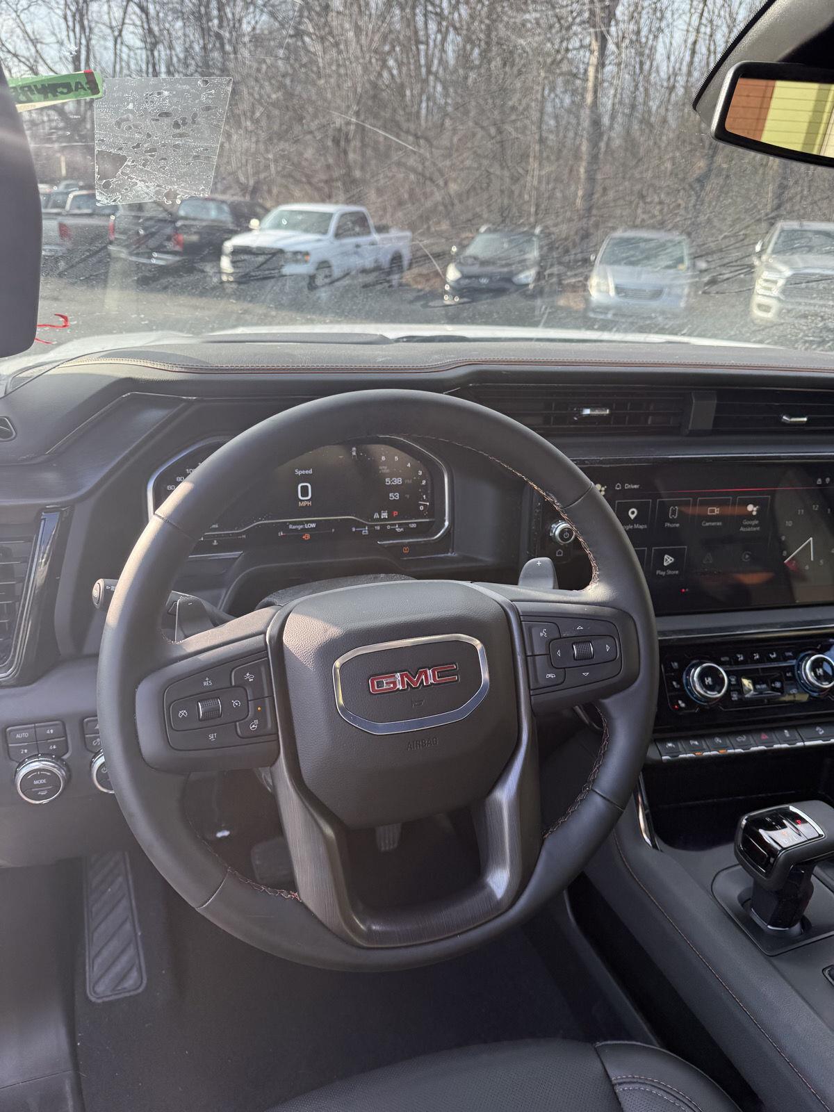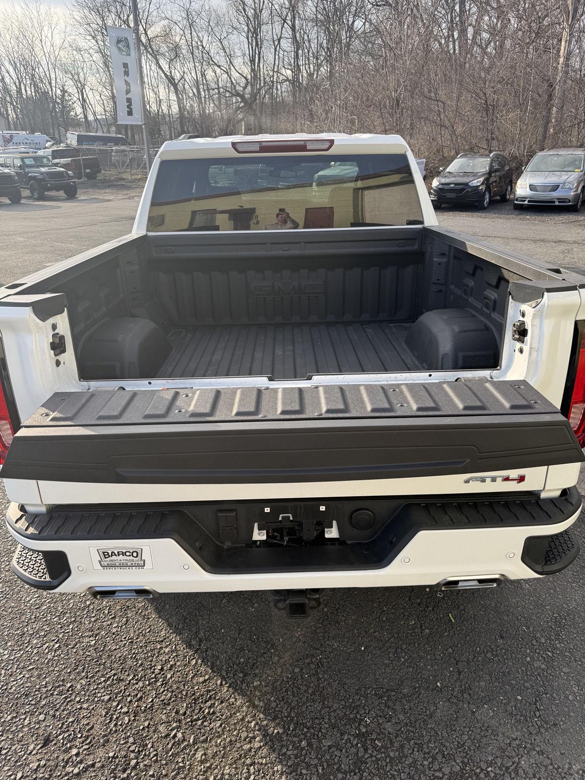 Meet the 2025 GMC Sierra 1500 AT4 — a head-turning White exterior with a sleek Black leather interior that blends rugged capability with premium comfort. Built to go anywhere, the AT4’s 4WD, locking differential, 275/60R20 tires and 11.1" ground clearance conquer rough roads while stability and traction control keep you confident in every condition. Step inside to heated leather seats, a heated leather steering wheel, dual-zone climate control and intuitive steering-wheel controls — plus keyless entry and remote start to make life easier. Safety is comprehensive with multiple airbags, ABS and electronic brake assistance, and you’ll drive with peace of mind thanks to strong factory warranties. Ready for work, play or both — call today to see and drive this Sierra AT4.