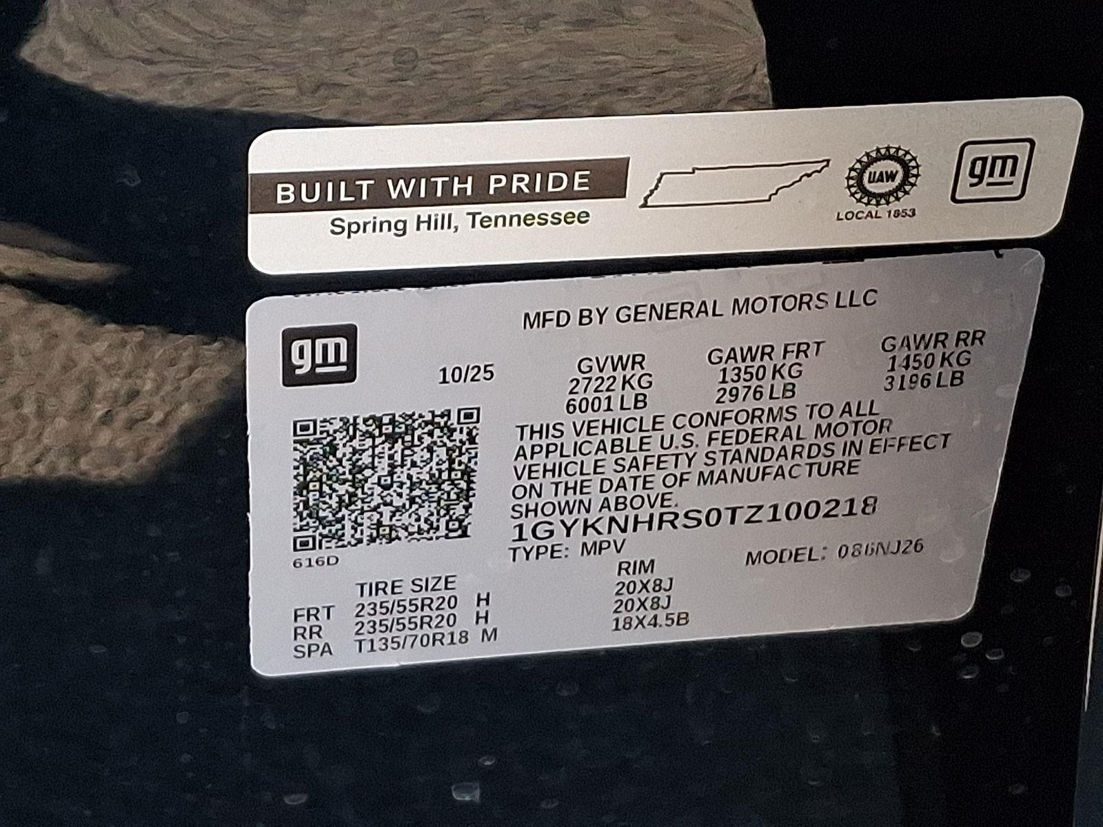 VIN: 1GYKNHRS0TZ100218