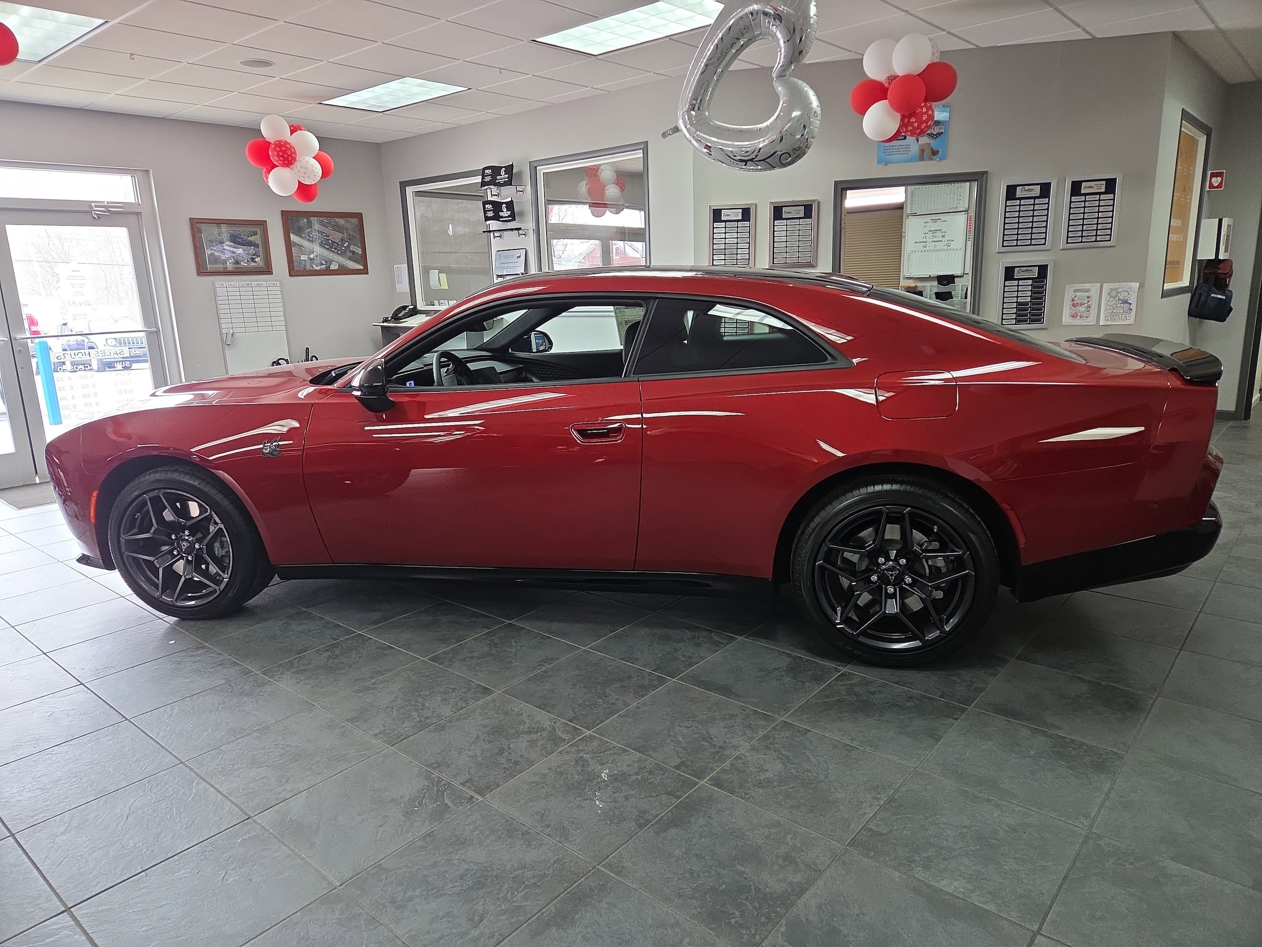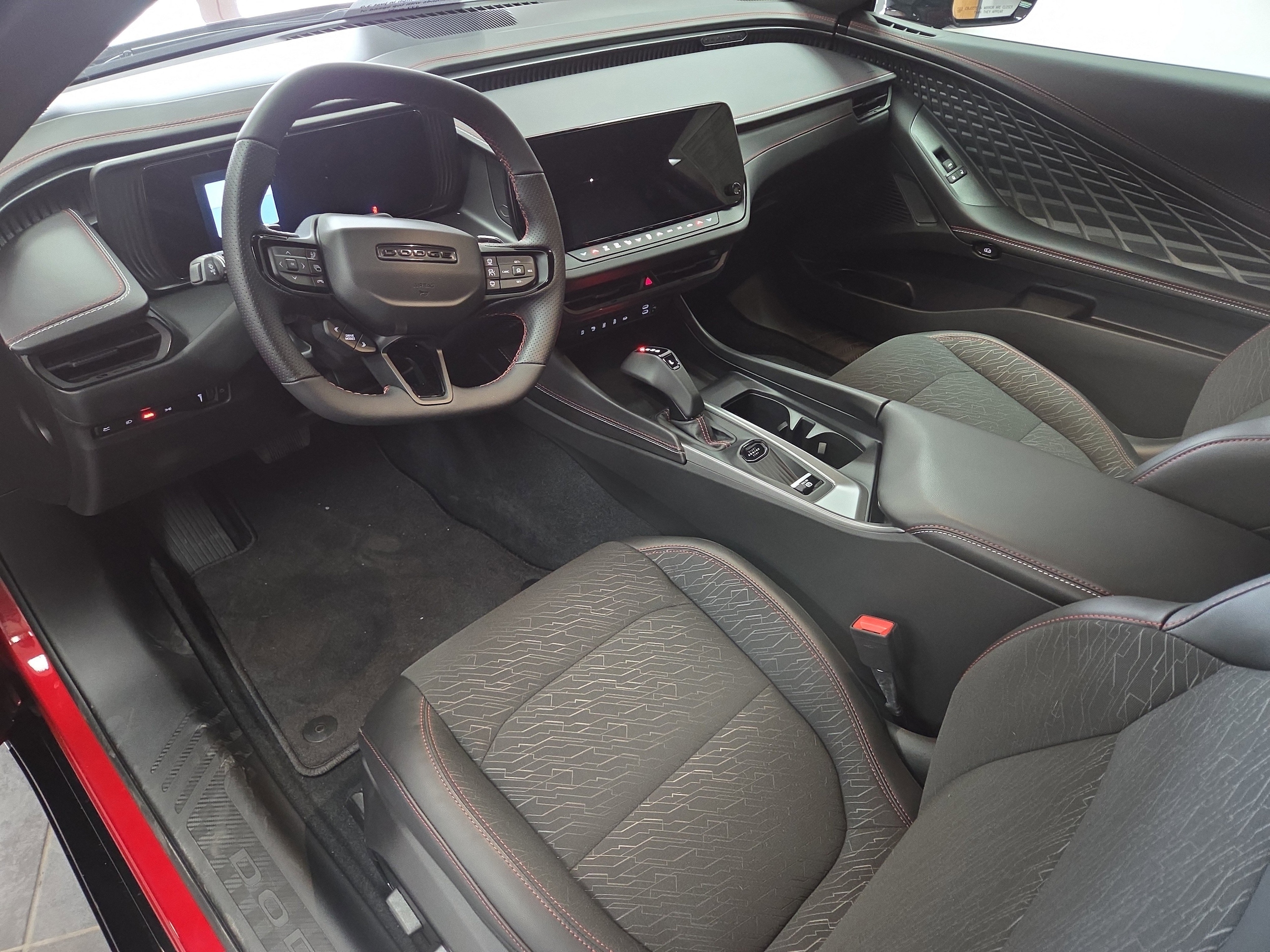 Turn heads in the 2026 Dodge Charger Scat Pack — finished in bold Red with a Black interior and engineered to perform. Standard AWD, a limited-slip differential and wide 275/40R tires put that Scat Pack attitude to the road, while 4‑wheel ABS, traction control and vehicle stability keep you planted and in command. Enjoy heated front seats and steering wheel, driver multi‑adjustable power seat, dual-zone climate control, keyless entry with remote start and a rich audio system with subwoofer for every drive. Safety is comprehensive (front and side airbags with head protection, electronic parking aid) and it’s backed by a 36/36k basic warranty, 60/60k powertrain coverage and 60‑month rust protection. Ready to feel it? Come take the Charger for a spin.