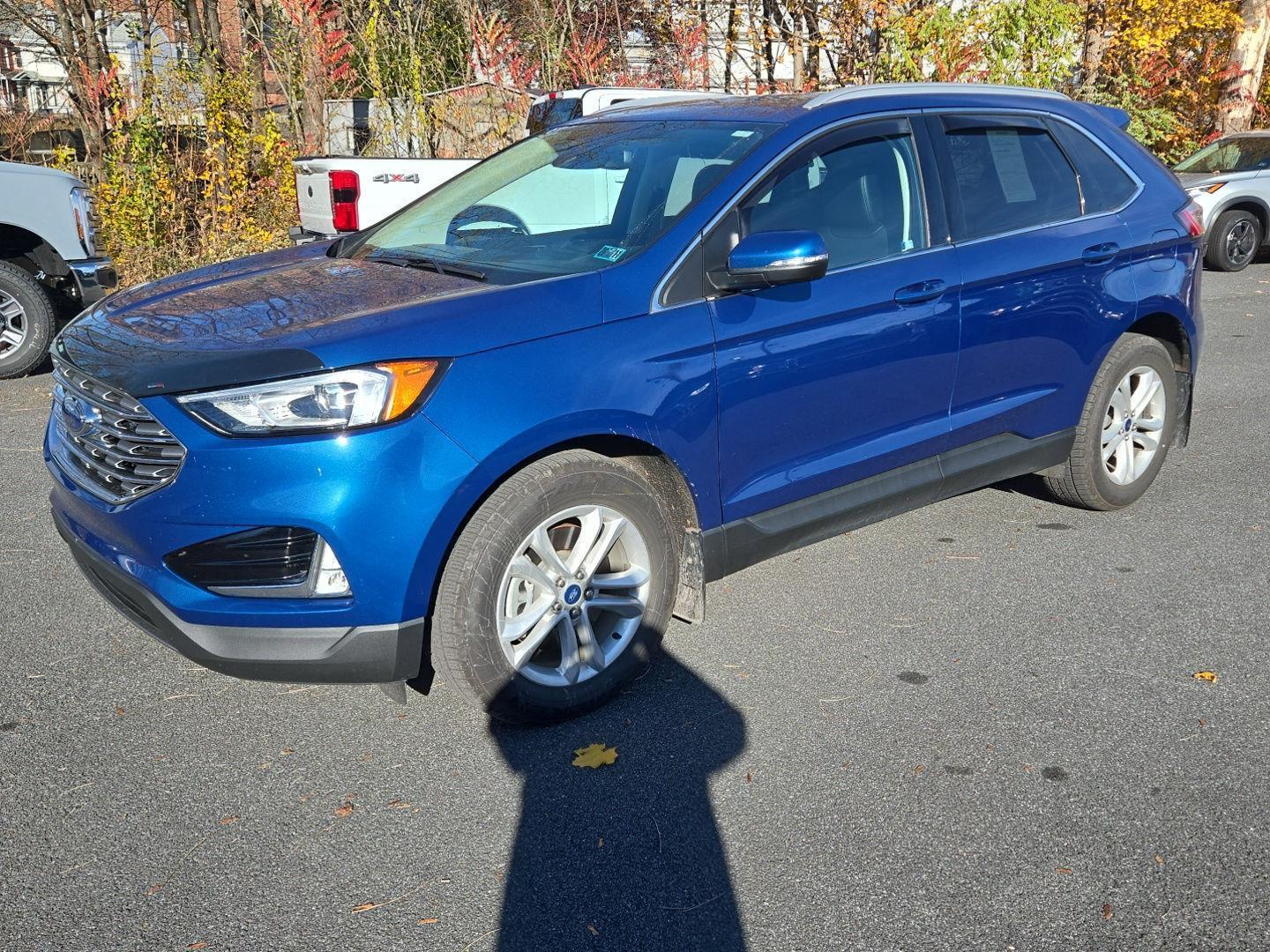 Turn heads in this 2020 Ford Edge SEL — striking Blue exterior with a sleek Black interior. Comfort and convenience are front and center with heated, multi-adjustable power front seats (power lumbar), telescopic steering, keyless start and cruise control for relaxed driving. Drive with confidence thanks to a comprehensive safety package: ABS/4-wheel anti-lock braking, driver/front-side/passenger and curtain airbags, child safety door locks and anti-theft protection. Sporty alloy wheels on 245/60R18 tires, fog lights and independent suspension deliver composed handling, while a roomy five-passenger cabin offers generous space for everyone. Backed by Ford’s warranties (36/36 basic, 60/60 powertrain, 60‑month rust) — schedule a test drive today and feel the difference.