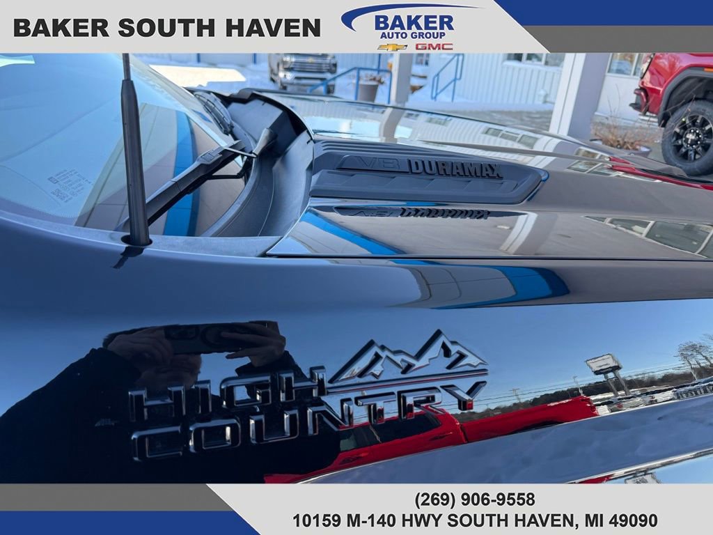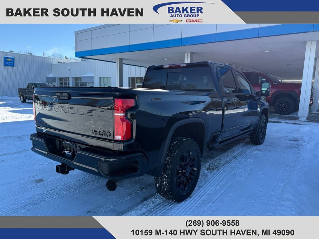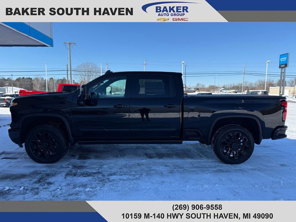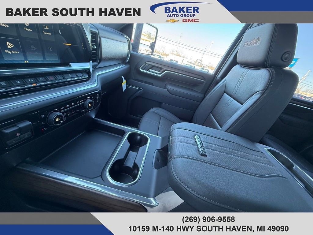 Meet the 2026 Chevrolet Silverado 2500 HD High Country in sleek Black — where premium comfort meets uncompromising capability. This High Country delivers heavy-duty performance with standard 4WD, locking differential, full stability and traction controls, ABS and electronic brake assist, plus LT265/60R22 all‑terrain tires and a full‑size spare. Inside, enjoy leather heated power seats with lumbar support, a heated leather steering wheel, dual-zone climate, premium audio with subwoofer, keyless entry and remote start with climate control — all backed by robust safety (comprehensive airbags, child locks, anti-theft) and helpful tech like tire pressure monitoring and electronic parking aid. Rugged, refined and ready for work or weekend — schedule your test drive today and experience the High Country difference.