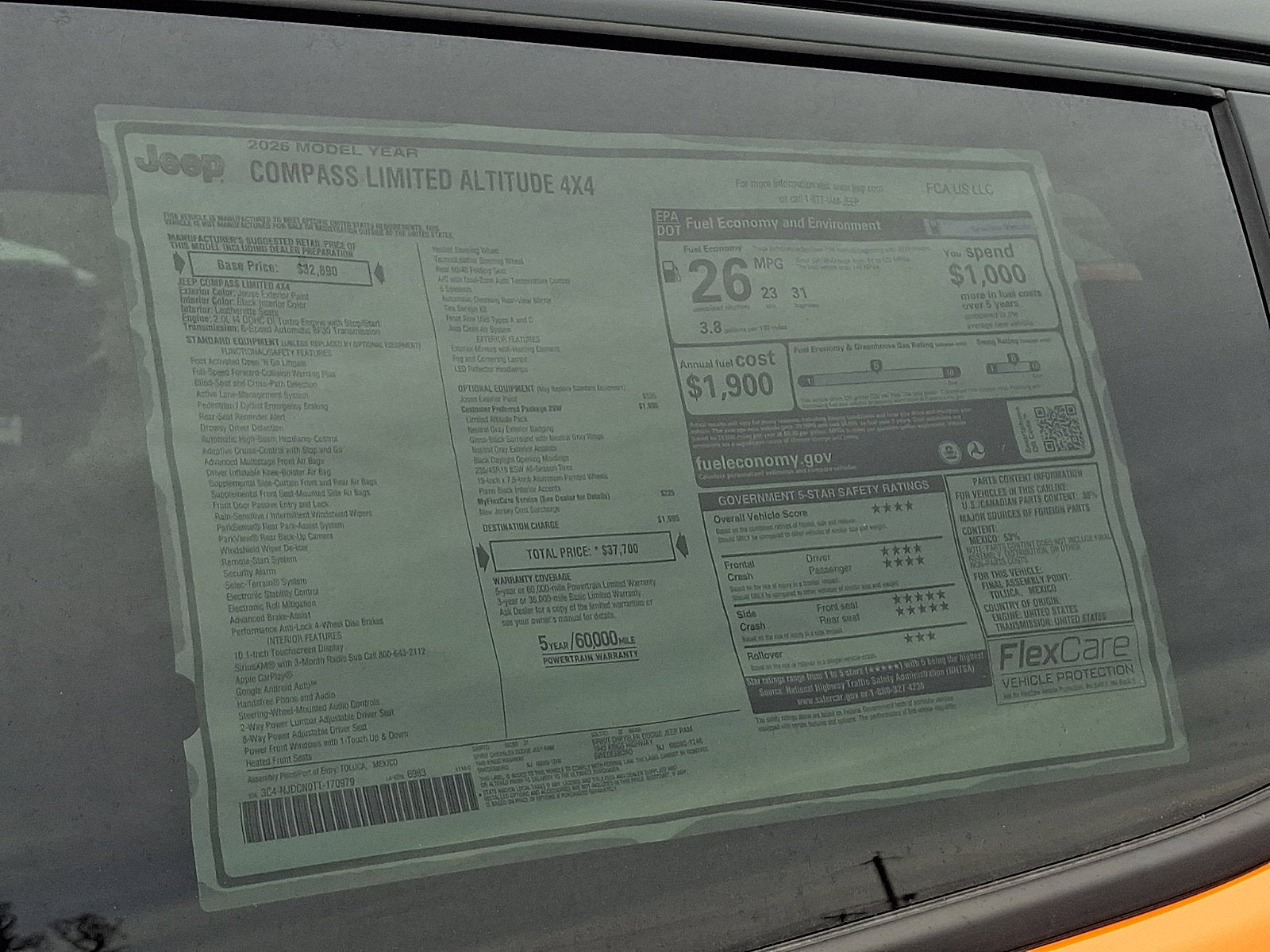 Meet the 2026 Jeep Compass Limited Altitude — a compact SUV that stands out in Orange with a sleek Black interior. The Limited Altitude package gives you premium Altitude styling with gloss-black accents, a comfortable, tech-forward cabin with an intuitive infotainment system and smartphone integration, available all‑wheel capability for confident outings, and versatile cargo space for everyday life. It’s also backed by basic, powertrain and rust warranties for added peace of mind. Ready to turn heads and go the distance — come in for a test drive today.
