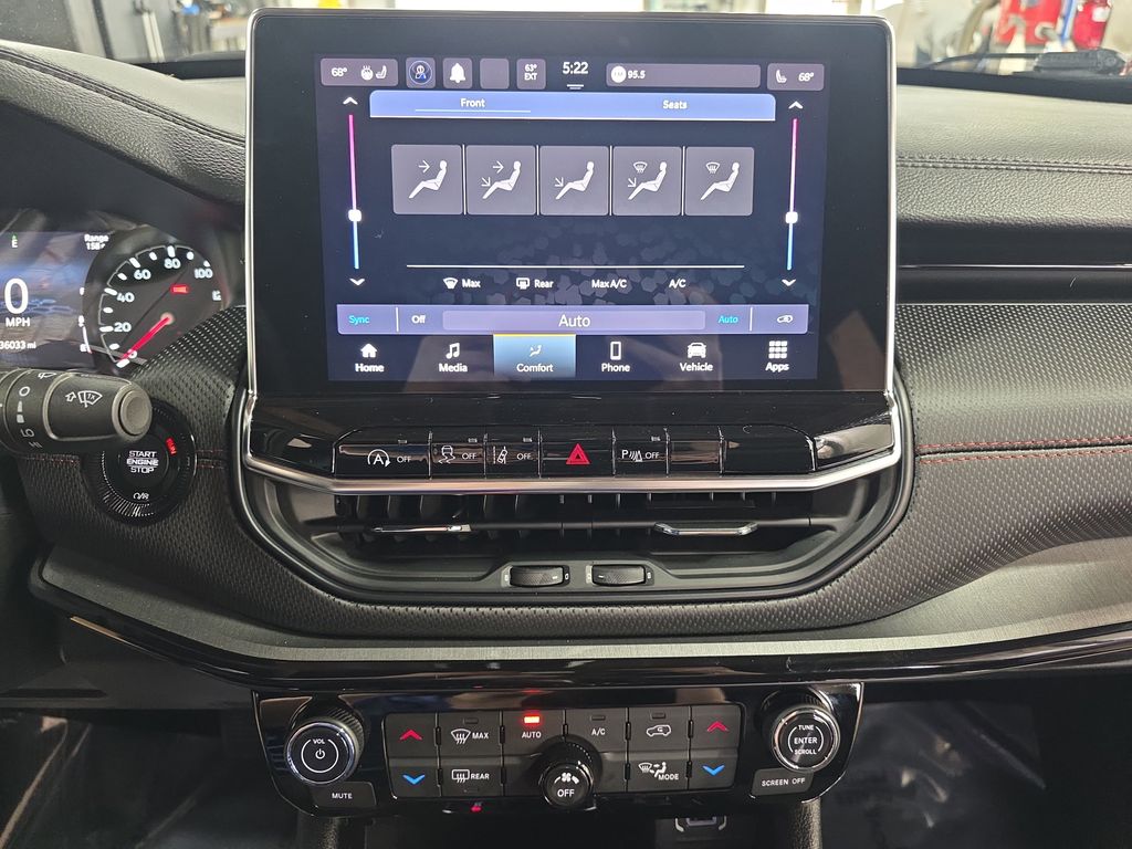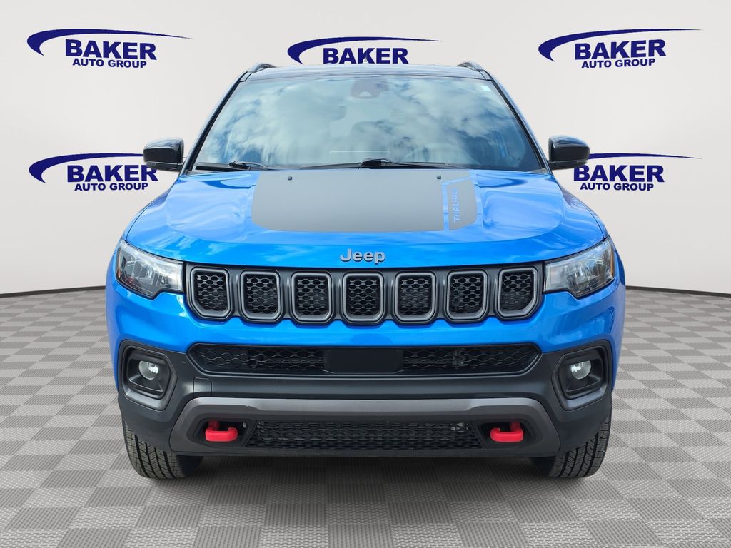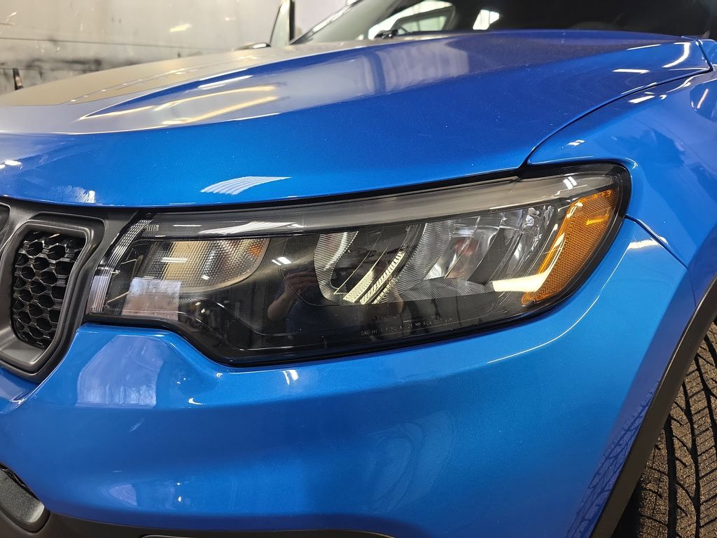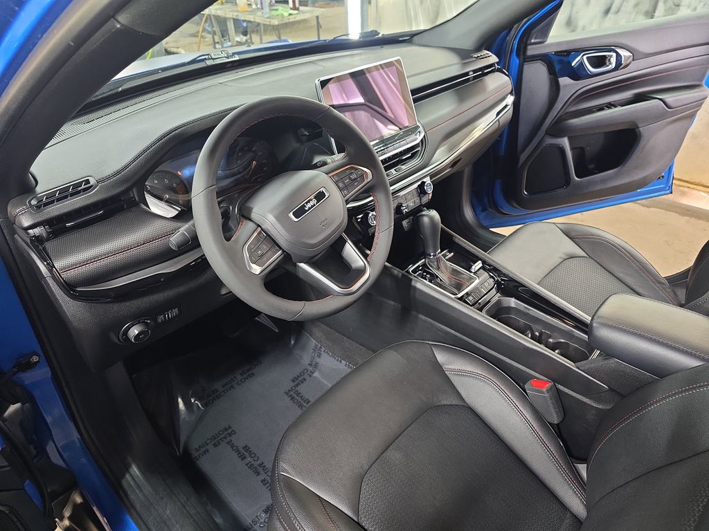 Meet the 2024 Jeep Compass Trailhawk in striking Blue — a compact SUV engineered for weekend trails and weekday comfort. Trail-ready hardware includes standard 4WD, limited-slip and locking differentials, ABS, traction and vehicle stability control, plus 8.6" ground clearance and a full-size spare for confidence off-road. Inside, enjoy heated leather seats, a heated leather-wrapped steering wheel, power multi-adjustable seats with lumbar, keyless entry and remote ignition with climate control, backed by a premium audio system with subwoofer. Top it off with comprehensive airbags, advanced braking systems and solid coverage (36/36k basic, 60/60k powertrain, 60-month rust) — stop by for a test drive today.