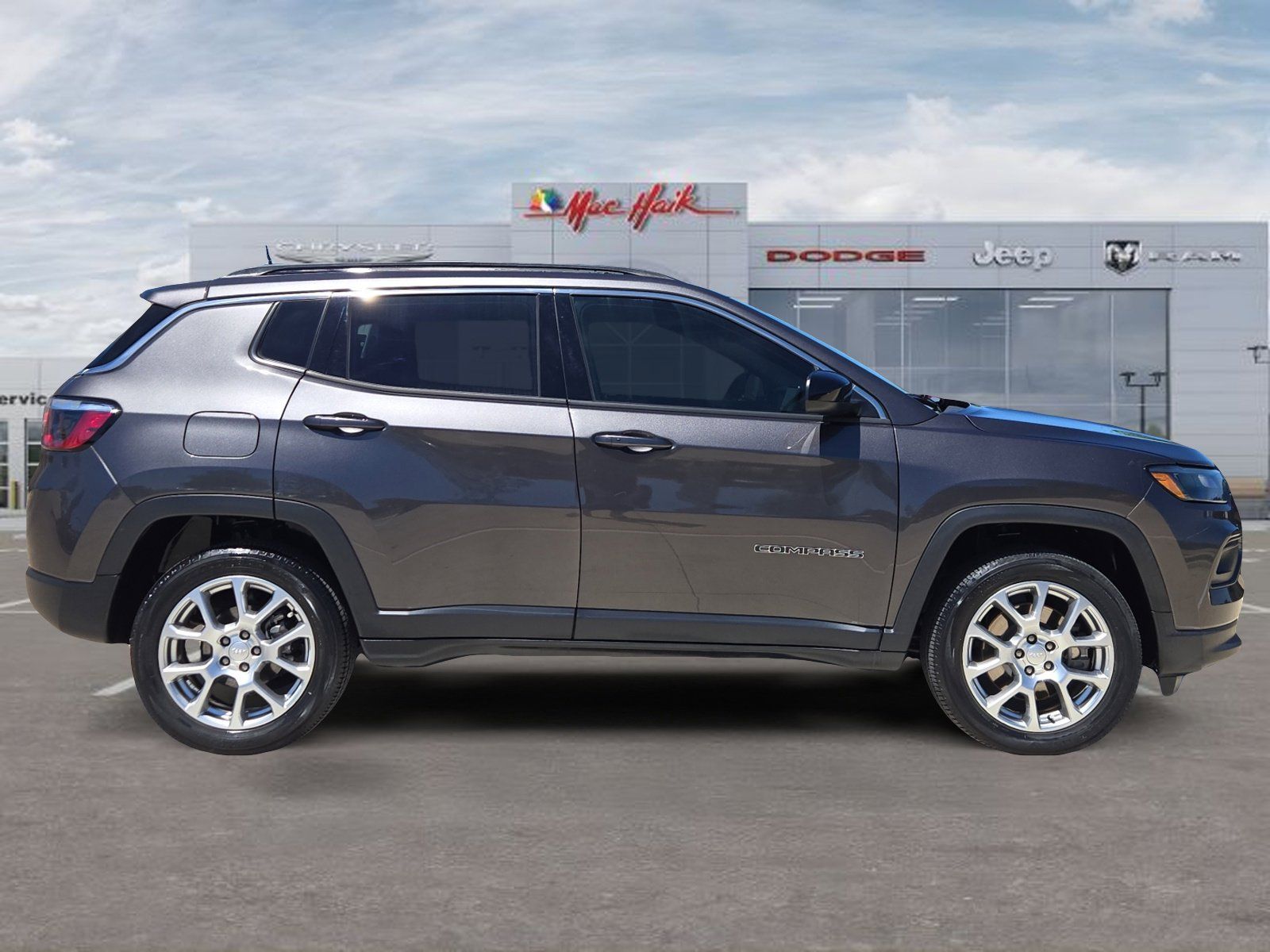 Meet the 2023 Jeep Compass Latitude LUX — sleek Gray exterior, sophisticated Black leather interior, and ready for anything. This compact SUV comes standard with AWD, locking/limited-slip differentials and full 4‑wheel ABS for confident handling, plus advanced stability and traction control. Enjoy premium comfort with heated leather front seats, heated leather steering wheel, multi-adjustable power seats with lumbar support, and keyless entry with remote start and climate control. Safety is comprehensive — multiple airbags and modern driver aids — and the factory warranties provide real peace of mind. Ready to take it for a spin? Call or stop by today for a test drive.