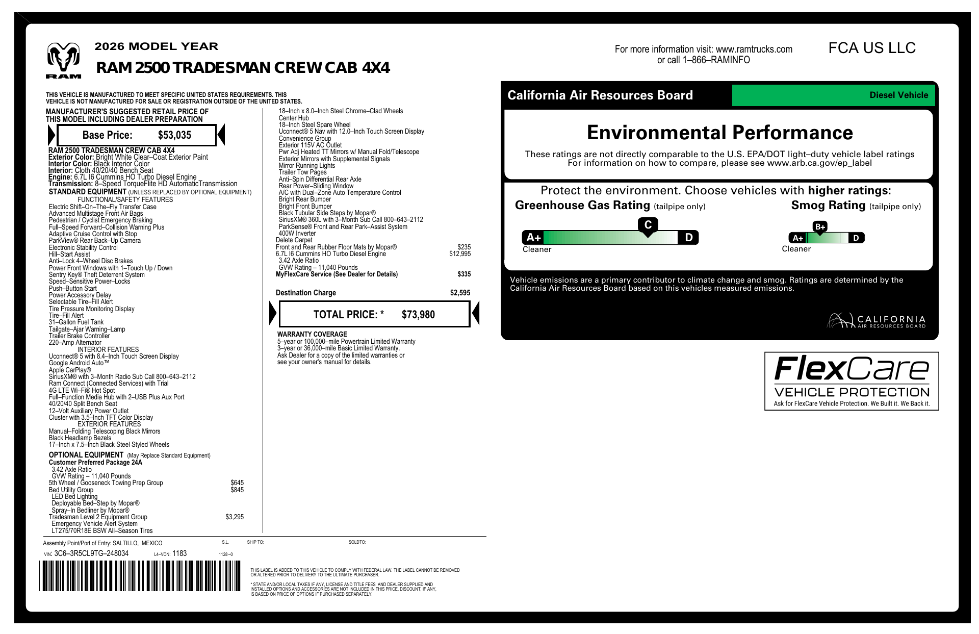 I can write that—quick question first: do you want me to include the exact warranty terms (years/miles) or should I use placeholders? I can also draft a version using common factory terms (e.g., 3 years/36,000 miles basic; 5 years/60,000 miles powertrain) if you’d like. Below is a polished blurb with fill-in placeholders so you can drop in the warranty lengths: 2026 RAM 2500 Tradesman Crew Cab — White. Built tough for the jobsite and weekend adventures, this Tradesman combines a spacious Crew Cab with rugged, work-ready durability. Expect heavy-duty capability, intuitive towing tech, and a no-nonsense interior designed for utility and comfort. Backed by manufacturer warranties (Basic: [___], Powertrain: [___], Rust: [___]), this RAM offers peace of mind along with the strength to get the job done. Ready to take a look?