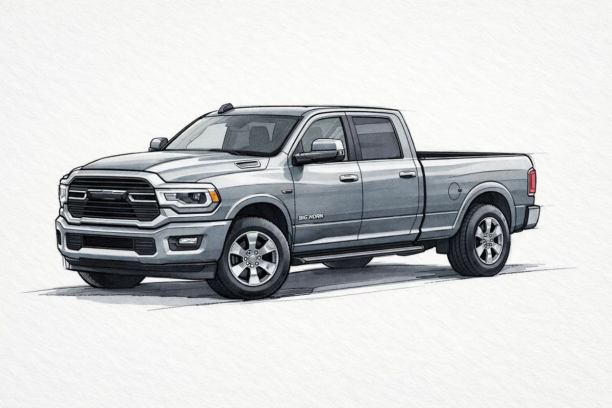 Meet the 2026 Big Horn Crew Cab in Silver — built to work hard and drive easy. With true 4WD, LT235/80R17E off‑road tires and 11.5" ground clearance, this truck tackles trails and job sites with confidence. Stay secure with ABS, traction and stability control plus a full suite of airbags, while everyday convenience comes courtesy of keyless entry, remote start with climate control, heated mirrors and power windows. Room for six, a full‑size spare, generous interior space and a long‑lasting powertrain warranty (10 years/100,000 miles) round out a package that’s as dependable as it is capable. Ready to take it for a spin?
