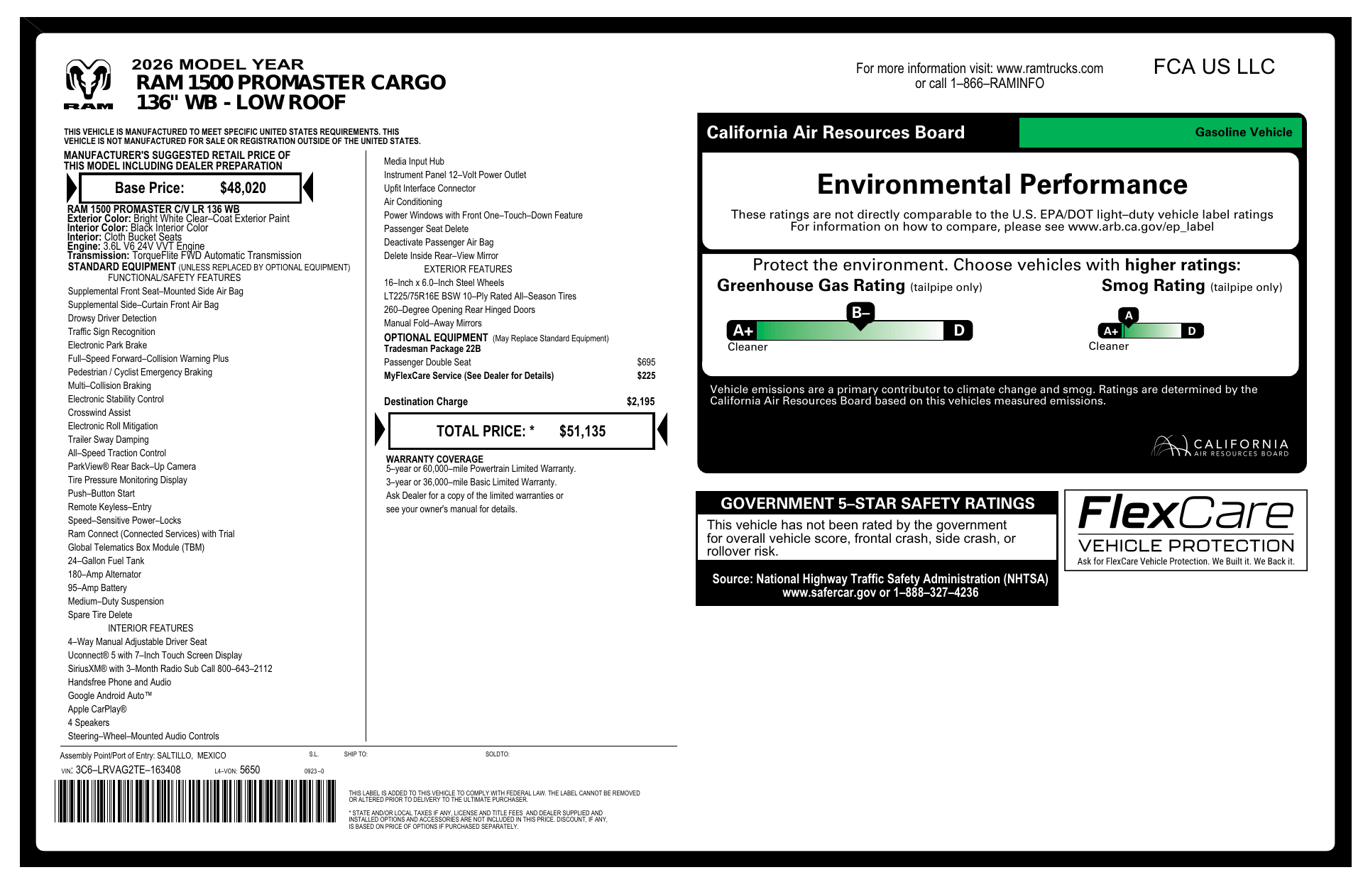 Introducing the 2026 RAM ProMaster City Tradesman in crisp White with a durable Black interior — the compact, city-ready workhorse built for professionals. Upfit-ready cargo space, low load floor and sliding side doors make loading and organizing tools effortless, while nimble handling and efficient operation keep you productive on tight urban routes. Modern connectivity and driver-assist features help you stay connected and safe on the job. Backed by the manufacturer’s basic, powertrain and rust-through warranties for added peace of mind — the perfect blend of durability, versatility and value for your business.