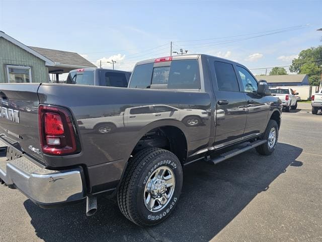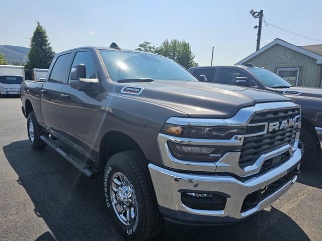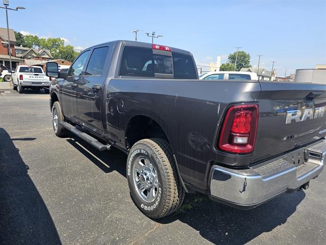 Introducing the 2025 RAM 2500 Tradesman Crew Cab in sleek Gray — a hardworking heavy‑duty truck that doesn’t skimp on comfort or tech. With standard 4WD, full‑size spare on rugged LT275/70R18E tires and steel wheels, and advanced stability, traction and ABS systems, it’s ready for tough jobs and rough roads. Inside you’ll appreciate roomy six‑passenger Crew Cab space, keyless entry with remote start and climate control, navigation and steering‑wheel controls, plus automatic headlights and a full suite of airbags for peace of mind. Ready to work, ready to drive — stop by for a test drive today and see why the RAM 2500 is the smart choice for capability and comfort.