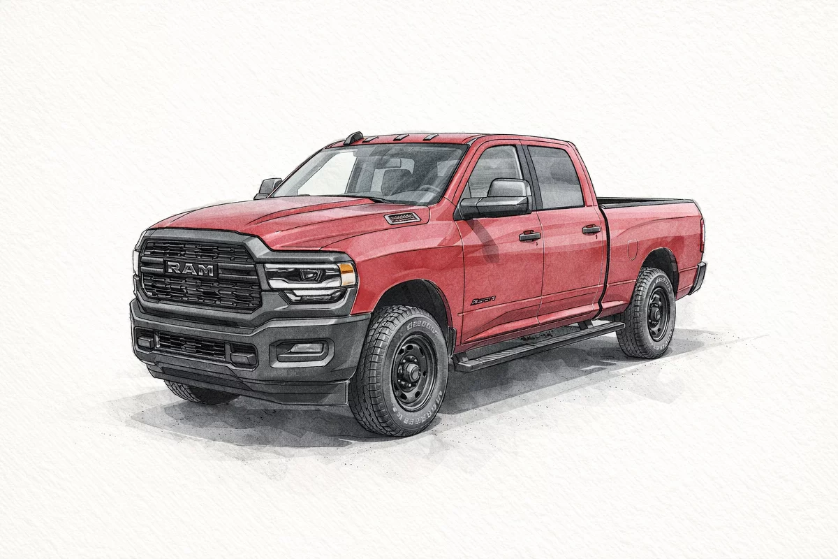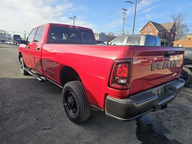 Turn every job into a statement in the 2026 RAM 2500 Tradesman Crew Cab — finished in eye-catching Red and built to work. This heavy-duty truck pairs a spacious Crew Cab with purposeful bed storage, rugged suspension, and robust engine options (gas or turbo-diesel) for serious towing and payload capability. Practical tech and work-focused appointments keep your crew comfortable and productive all day. Backed by basic, powertrain and rust warranties for added peace of mind — call or stop by today to see it and take one for a test drive.
