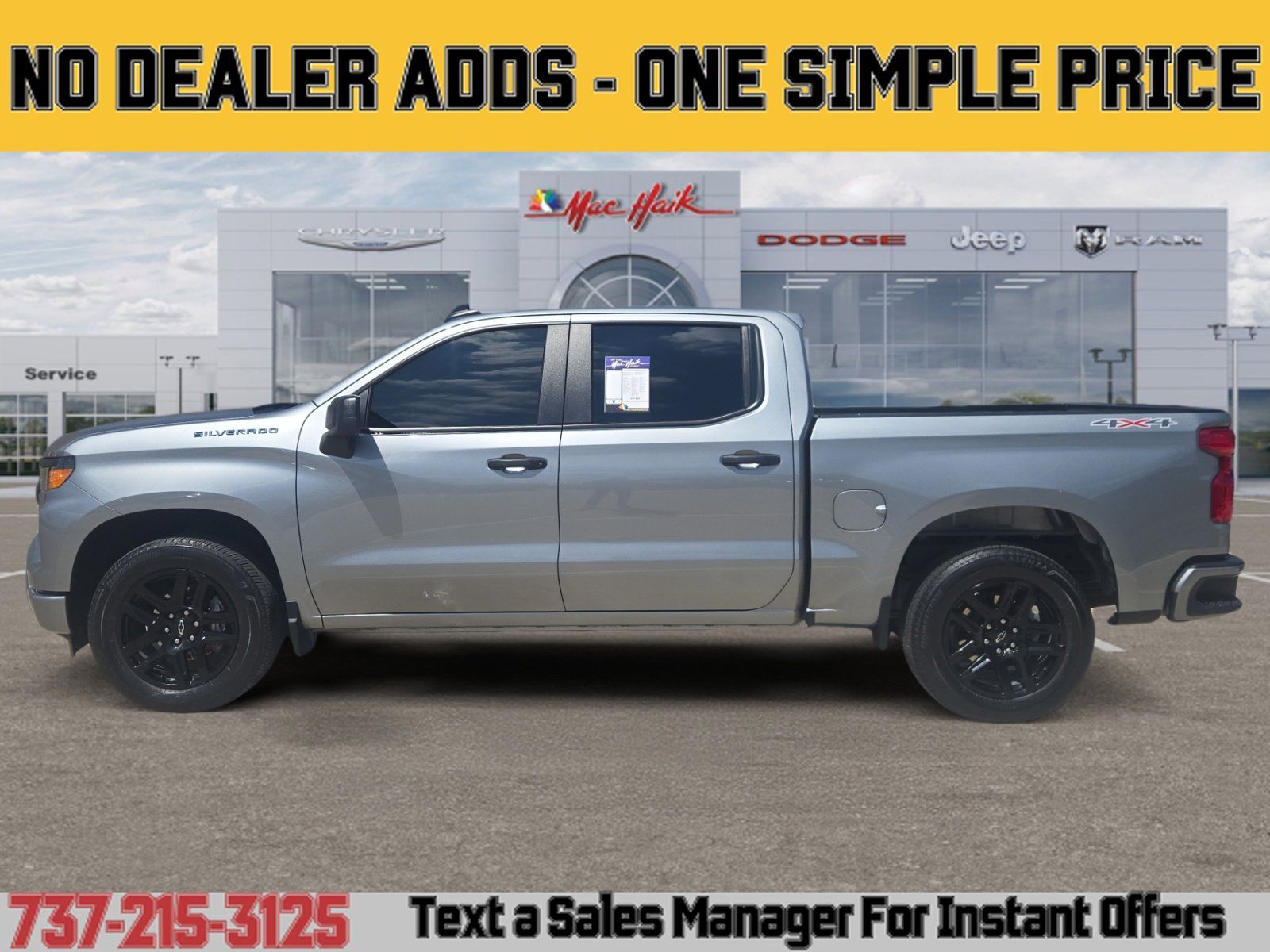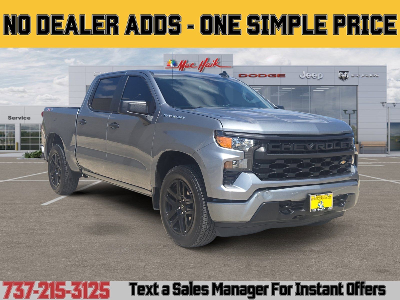 Meet the 2024 Chevrolet Silverado 1500 Custom in sleek Gray with a Black interior — built to work hard and travel in comfort. Equipped with 4WD, ABS, traction and stability control, and a full complement of airbags, it delivers confident handling and peace of mind. Enjoy modern convenience with keyless entry, navigation, dual-zone climate controls, cruise control, steering-wheel audio controls and a power driver seat with lumbar support, plus automatic headlights, heated mirrors and 20" alloy wheels on 275/60R20 tires (full-size spare included). Backed by Chevrolet warranties (3/36 basic, 5/60 powertrain, 6/100 rust), this Silverado is ready — stop by for a test drive today.