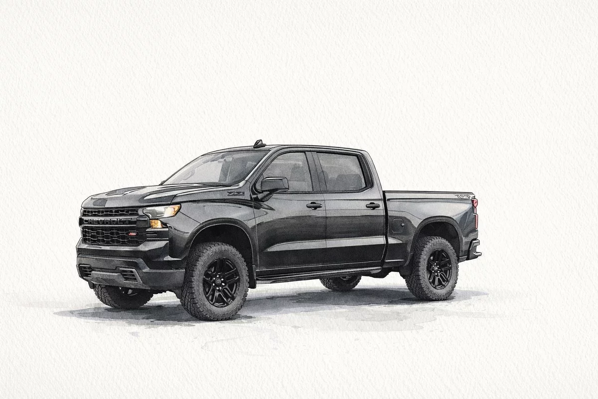 2026 Chevrolet Silverado 1500 Custom Trail Boss — Black on Black, built to work and to turn heads. Trail Boss-tuned suspension, underbody skid plates and all‑terrain rubber give you true off‑road capability, while the Custom trim delivers a smart, comfortable black interior with Chevrolet Infotainment (Apple CarPlay/Android Auto) and a tow‑ready chassis for hauling with confidence. Rugged looks, serious capability, and peace of mind — comes backed by Chevrolet’s factory basic, powertrain and rust warranties. Ready to take it for a test drive?
