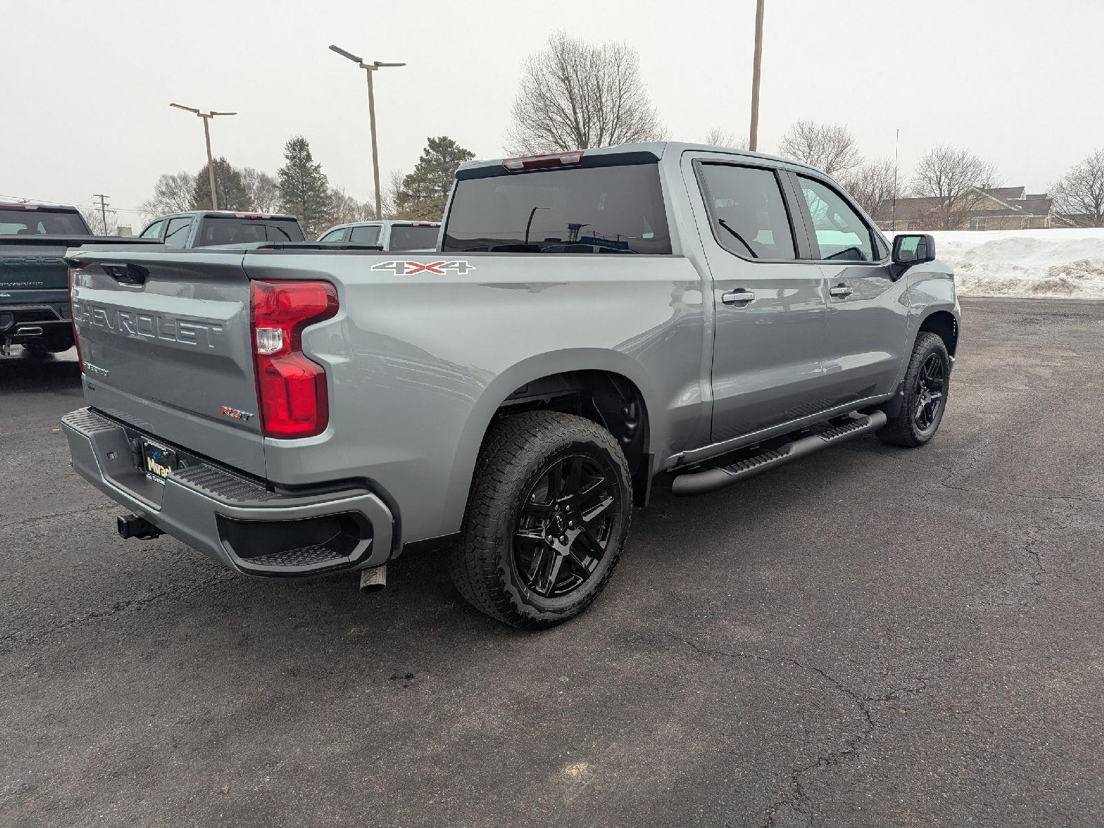 Introducing the 2026 Chevrolet Silverado 1500 RST in striking Gray with a Black interior — where rugged capability meets refined comfort. This RST delivers sure-footed confidence with full-time 4WD, a locking differential, traction and stability control, and 275/60R20 all-season tires on bold 20‑inch wheels (plus a full-size spare). Stay comfortable no matter the season with heated front seats, a heated leather steering wheel, power-adjustable driver seat with lumbar support, and remote start with climate control. Safety is comprehensive — multiple airbags, ABS, and electronic brake assistance — and the roomy cabin seats six with impressive legroom. Backed by Chevrolet factory warranties, it’s ready for work, weekend adventure, or daily driving — come in today and take it for a test drive.
