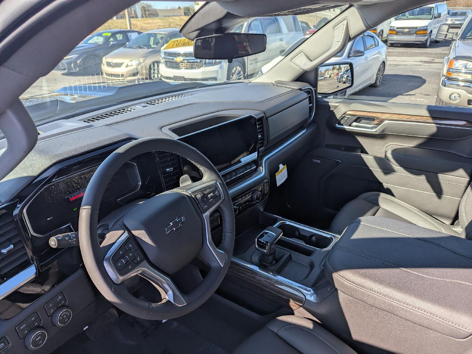 Introducing the 2026 Chevrolet Silverado 1500 LT Trail Boss in striking Black with a black leather interior — a true blend of rugged capability and everyday comfort. Trail-ready features include 4WD with locking differential, Goodyear Wrangler MT 275/65R18 tires, and Trail Boss suspension hardware, while ABS, traction/stability control and a full complement of airbags keep you confident on- and off-road. Premium creature comforts include heated leather seats, heated leather-wrapped steering wheel, dual-zone climate with remote start, keyless entry, AM/FM + subwoofer and a full-size spare. Backed by Chevrolet warranties (36/36 basic, 60/100 powertrain, 72/100 rust), this Silverado is ready to work — and impress. Stop in or call today for a test drive.