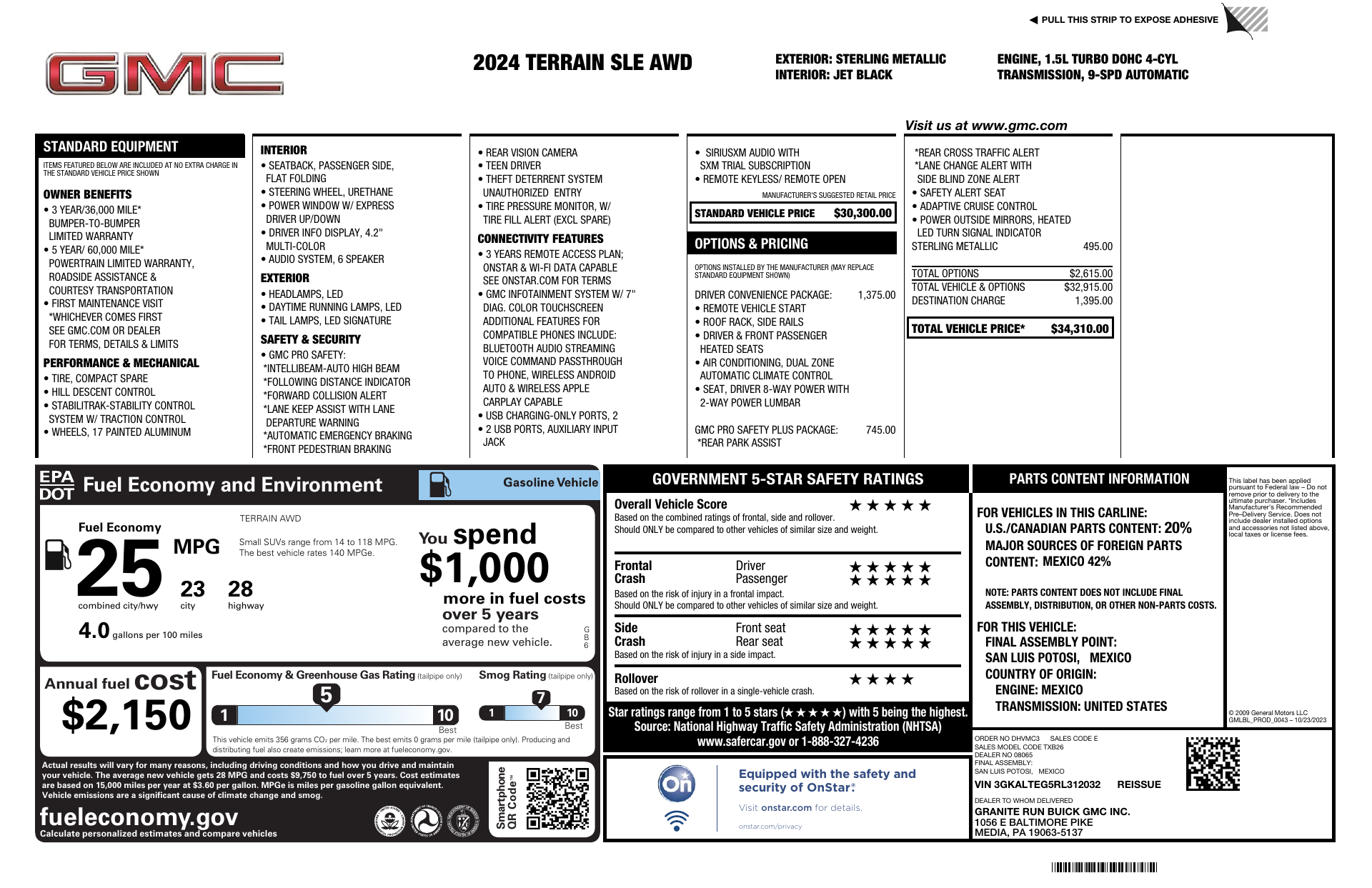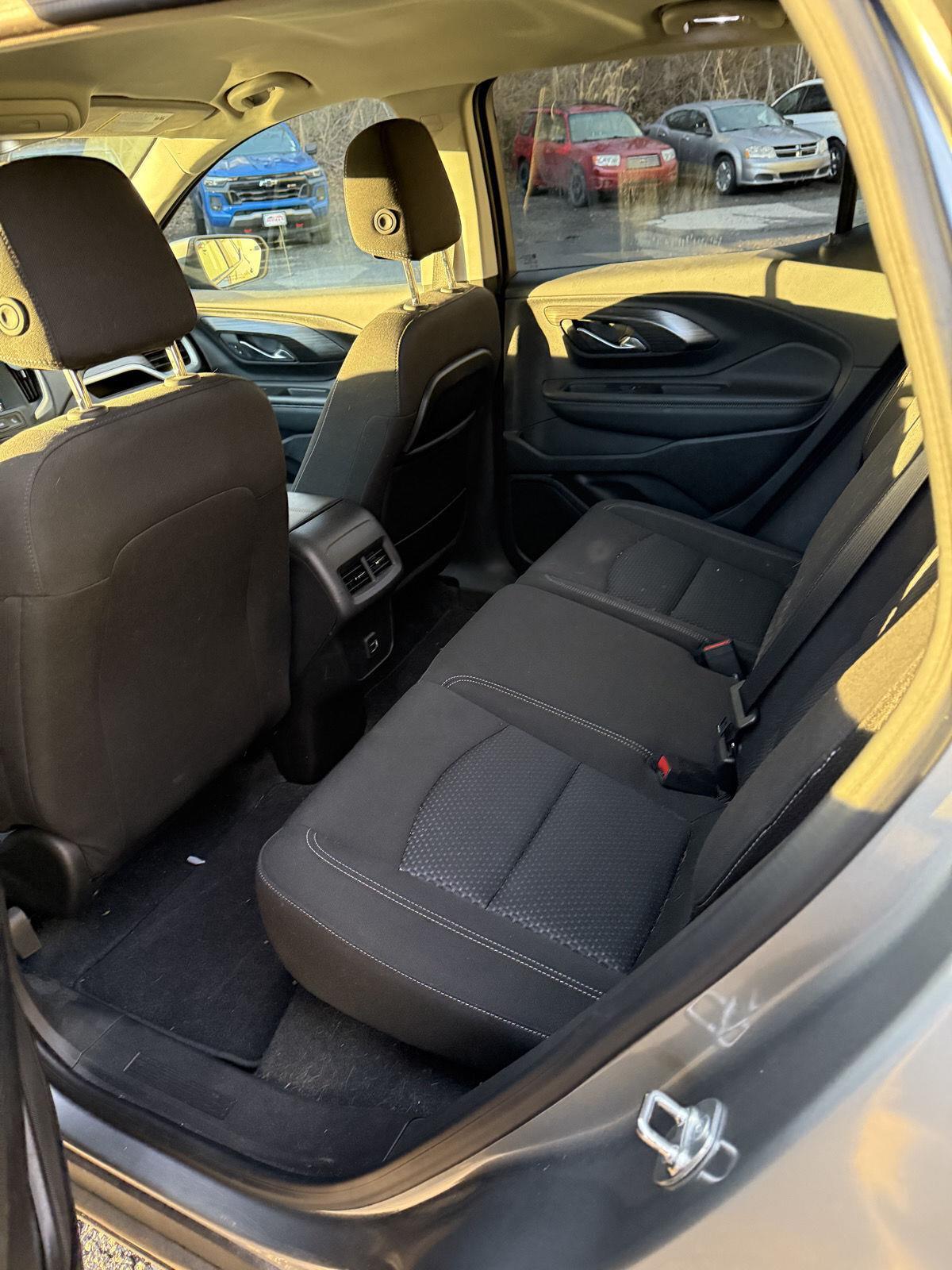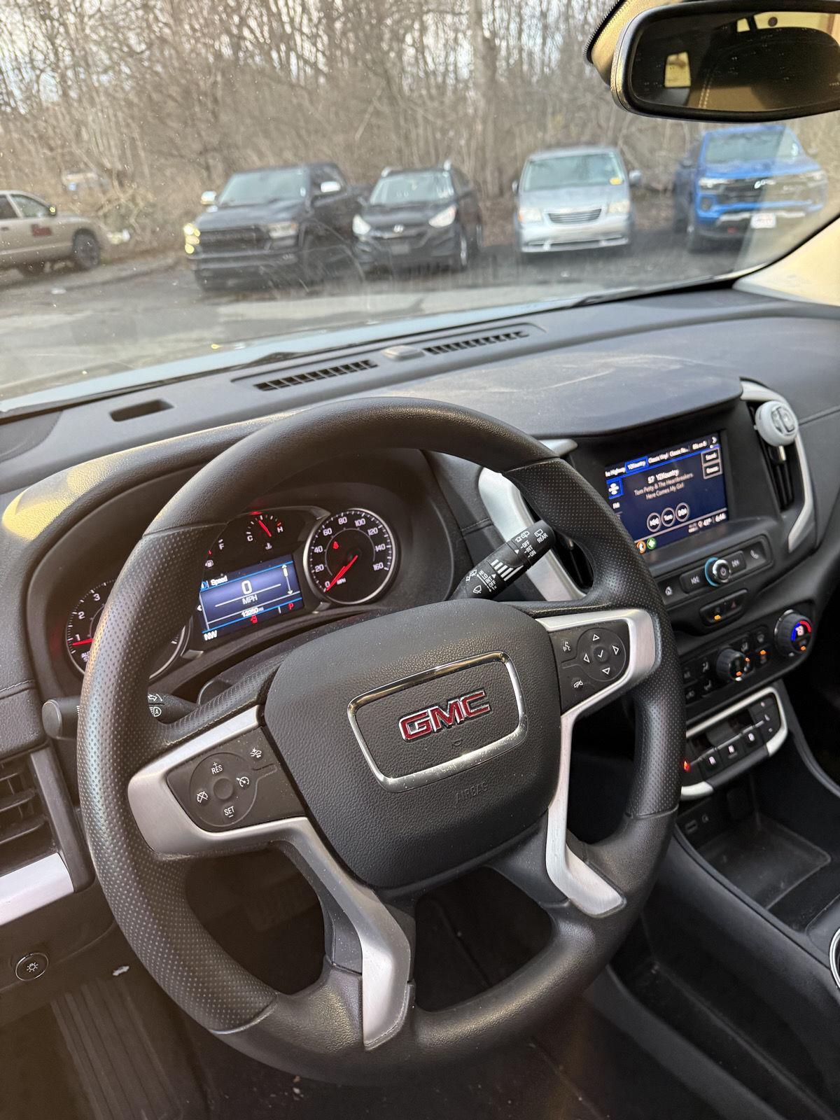 Meet the 2024 GMC Terrain SLE in striking Frostbite White with a sleek Black interior — the compact SUV built for comfort, confidence and everyday versatility. Standard AWD and a full suite of safety tech (ABS, traction & stability control, multiple airbags and an electronic parking aid) keep you secure on any road, while heated leather front seats, a heated leather steering wheel and power-adjustable driver/passenger seating deliver premium comfort. Enjoy modern convenience with keyless entry, remote start with climate control, automatic headlights, a full-size spare and a generous 3-year/36,000-mile basic warranty backed by a 5-year/60,000-mile powertrain plan. Stop by today for a test drive — this Terrain blends capability and refinement into one smart package.
