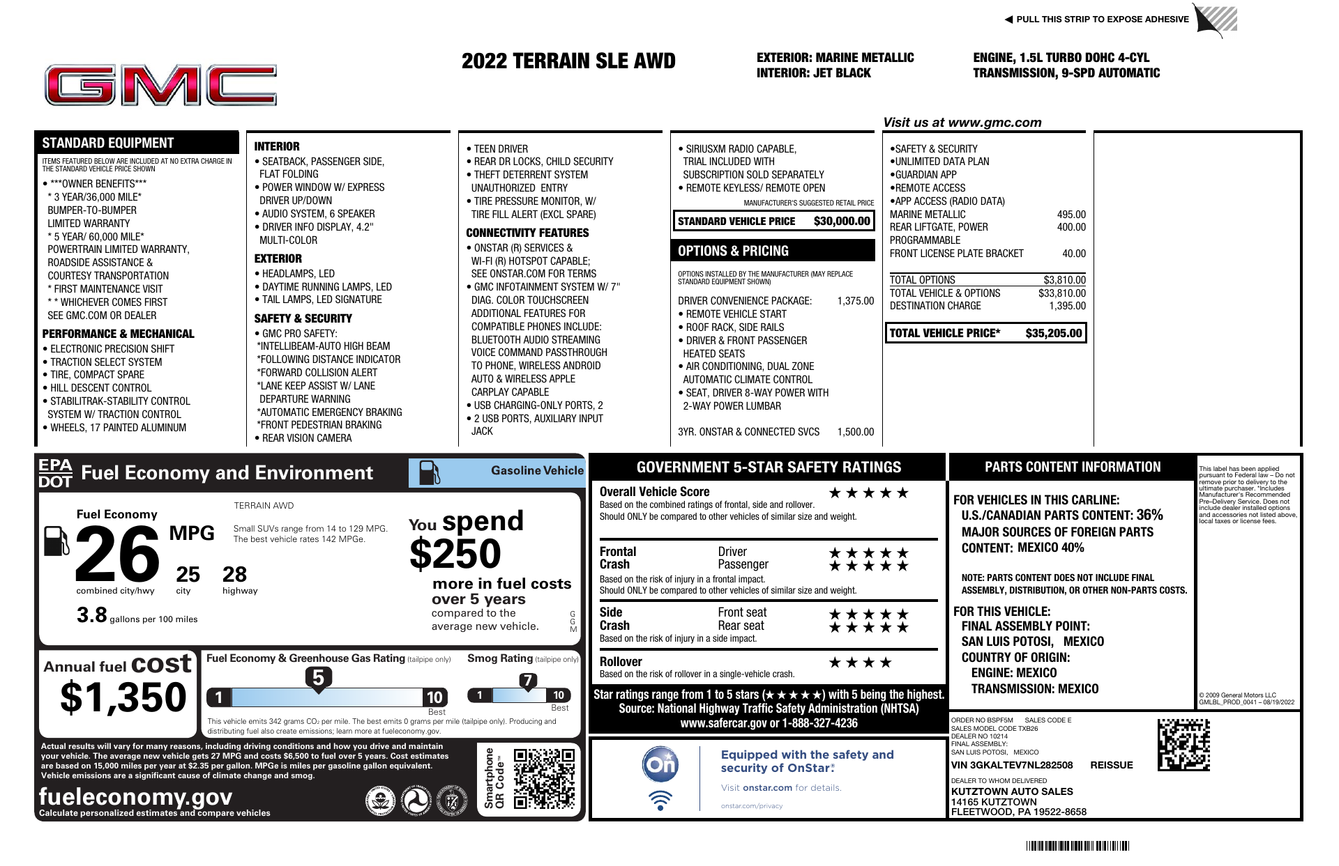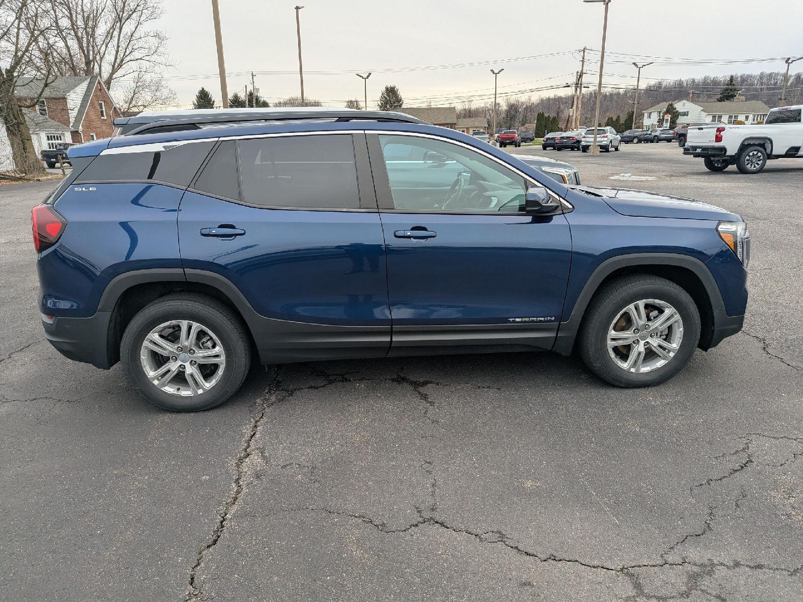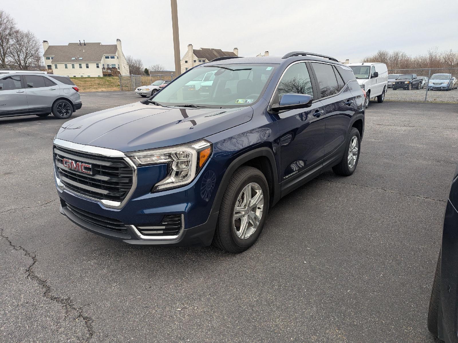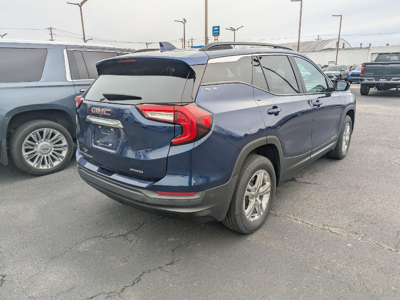 Turn heads in this 2022 GMC Terrain SLE finished in striking Blue with a sleek Black interior — a compact SUV that delivers safety, comfort and confidence in every drive. Equipped with capable AWD, ABS, traction control and stability systems plus comprehensive airbags and vehicle anti-theft protection, it’s built to keep you secure. Enjoy everyday convenience and comfort with keyless entry, remote start with climate control, heated power front seats with lumbar support, a power sunroof and a navigation-equipped infotainment system (DVD/AM‑FM included). Finished off with alloy wheels, automatic headlights and a full complement of modern monitors, it’s ready for whatever your day demands — all backed by solid warranties (3yr/36K basic, 5yr/60K powertrain, 6yr/100K rust). Want to see it up close? Come in for a test drive today.