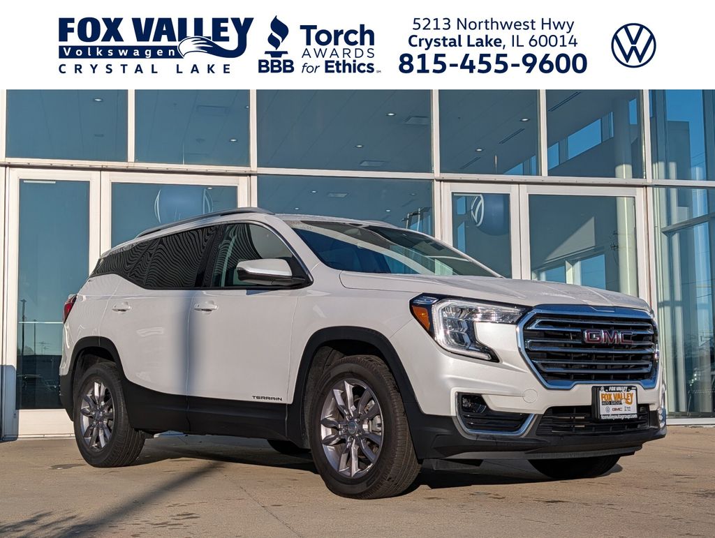 Meet the 2022 GMC Terrain SLT in striking Summit White with a sleek Black interior — a compact SUV that blends confident style with everyday practicality. Enjoy peace of mind with a full complement of safety features (ABS, traction control and multiple airbags), vehicle anti-theft protection, and fog/HID headlights paired with alloy wheels and P225/60R18 tires for a sure-footed ride. Inside you’ll find premium comforts like heated, multi-adjustable power front seats with power lumbar, telescoping steering, cruise control and convenient keyless start — seating for five and generous interior room top off the package. Backed by GM coverage: 3 years/36,000-mile basic, 5 years/60,000-mile powertrain and 6 years/100,000-mile rust warranty. Ready for a test drive?