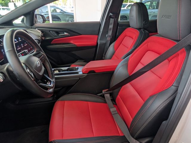 Meet the 2025 Chevrolet Equinox EV RS — crisp White exterior with a bold Red interior that turns every drive into an entrance. This RS brings sporty 21" alloy wheels wrapped in 275/40R21 tires, an upgraded power sunroof, and premium comfort with heated/cooled power front seats, heated leather steering wheel and power lumbar. Tech-forward conveniences include keyless entry and remote start with climate control, in-dash navigation, AM/FM, and a full suite of safety: ABS, traction and stability control, multiple airbags, parking aid, child locks and vehicle anti-theft. Backed by Chevrolet’s factory coverage — 3 years/36,000 miles bumper-to-bumper and 6 years/100,000 miles rust protection — this Equinox EV RS is ready to impress. Come see it and take one for a spin.