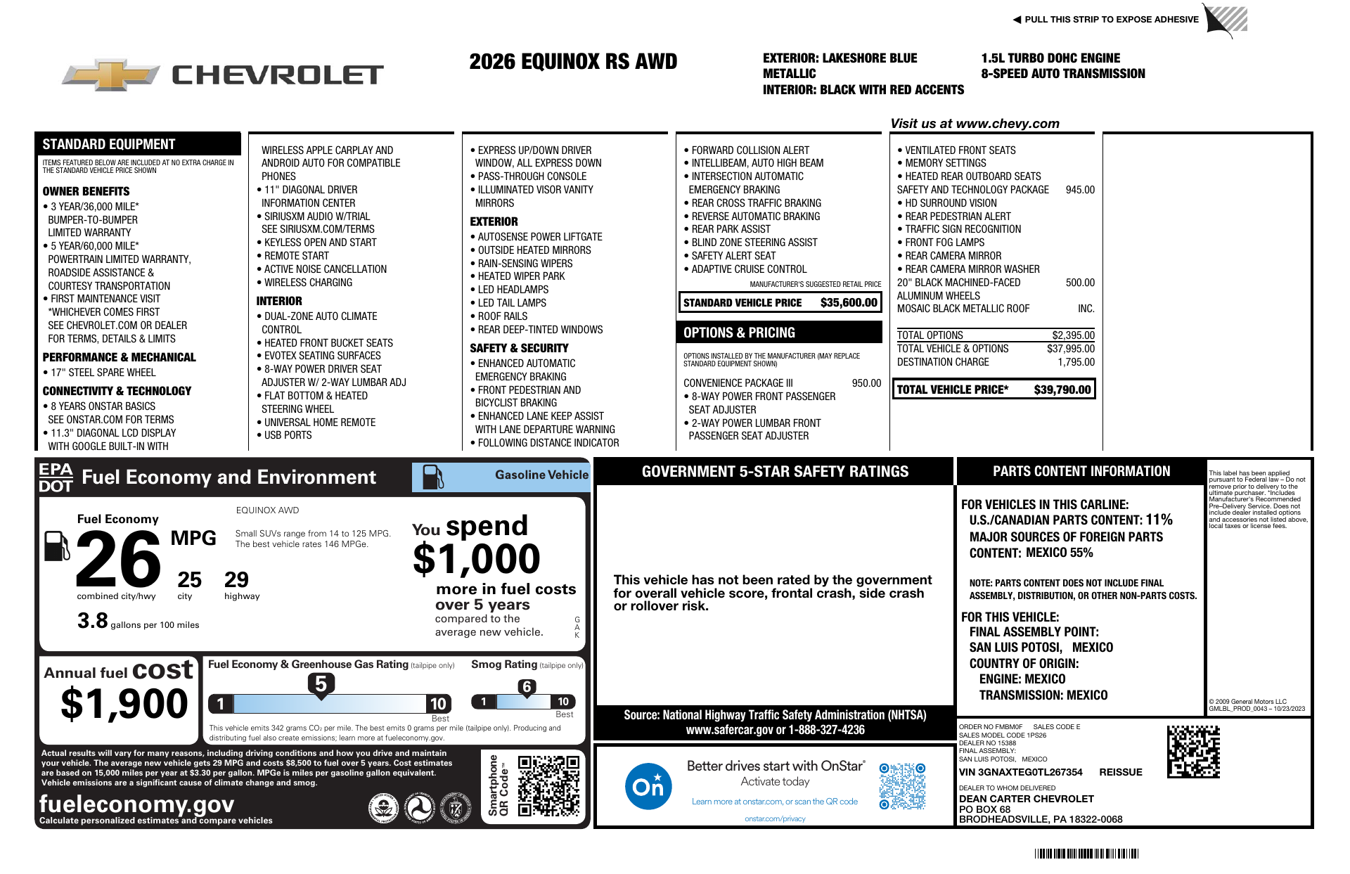 Meet the 2026 Chevrolet Equinox RS — finished in striking Blue with a sleek Black interior. This RS blends sporty style with everyday practicality and safety: ABS, traction control and vehicle stability work with a full suite of airbags to keep you confident on every drive, plus a built‑in anti‑theft system for peace of mind.