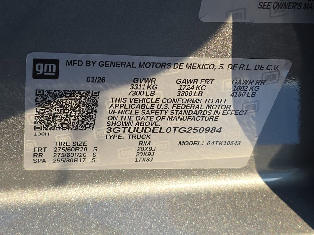 Meet the 2026 SLT in Frostbite White — a rugged yet refined pickup that blends capability, comfort and confidence. - Confident performance: full-time 4WD, locking differential, ABS and stability/traction control give you sure-footed handling on any road. - Advanced protection: comprehensive airbags, child safety locks and vehicle anti-theft systems keep your family and cargo secure. - Everyday luxury: leather-trimmed, heated & cooled front seats with multi-adjust power and lumbar support, heated leather steering wheel, and a power sunroof for open-air comfort. - Smart tech: navigation, keyless entry, remote start with climate control, AM/FM and trip computer keep you connected and in command. - Built for life: 22" tires with a full-size spare, roomy interior, and strong factory coverage (3/36 basic, 5/60 powertrain, 6/100 rust). Ready to see it in person? Call or stop by today and take the 2026 SLT for a test drive — drive it home in Frostbite White.