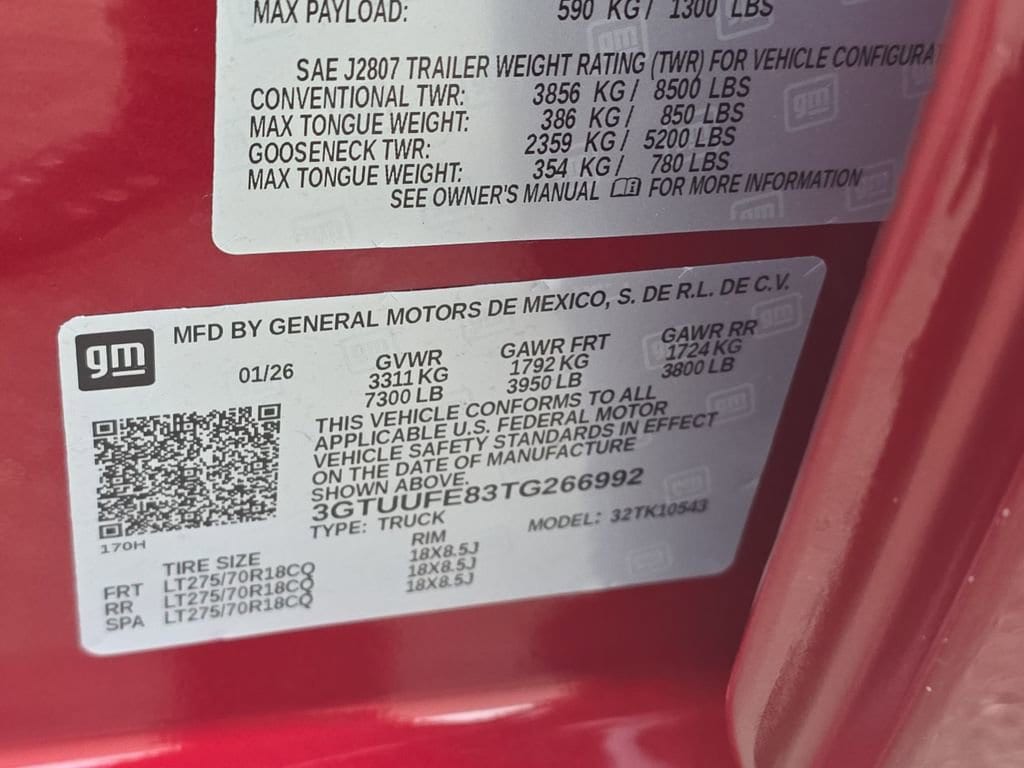 Turn heads in the 2026 AT4 in striking Red — a rugged yet refined pickup built for work, play and peace of mind. Standard 4WD with locking differential, ABS, traction and stability control plus a comprehensive anti-theft package mean you’ll stay confident on- and off-road; 11.5" ground clearance and LT275/70R18 tires help you get where you’re going. Enjoy premium comfort with heated leather seats, heated steering wheel, multi-adjustable power seats with lumbar support, keyless entry and remote start with climate control, plus a punchy sound system with subwoofer. Backed by a 36/36k basic, 60/60k powertrain and 72/100k rust warranty — ready to drive home today. Stop by for a test drive and feel the difference.
