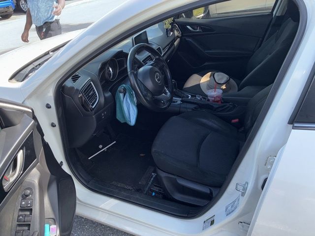 2015 Mazda3 i Touring — White exterior, Black interior. Sporty, efficient and loaded with the features buyers want: advanced safety (ABS, traction/stability control, full airbag suite), convenience like keyless start and remote ignition with climate control, leather-wrapped steering, cruise control and steering-mounted audio controls. It rides on stylish 16" alloy wheels with fog lights and a rear spoiler, offers a roomy 5-passenger cabin (96.3 cu ft) and 12.4 cu ft of cargo, plus a folding rear seat and upgraded cargo net for extra utility. Comes with confidence-building coverage — 36/36 basic, 60/60 powertrain and 60-month rust warranties. Smart value, great ownership peace of mind — call or stop by today to take it for a test drive.
