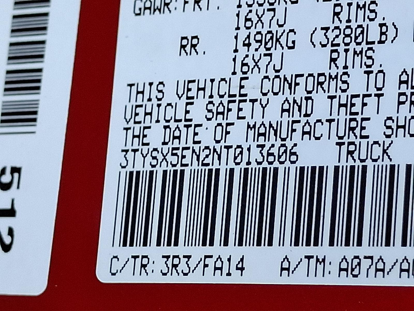 VIN: 3TYSX5EN2NT013606
