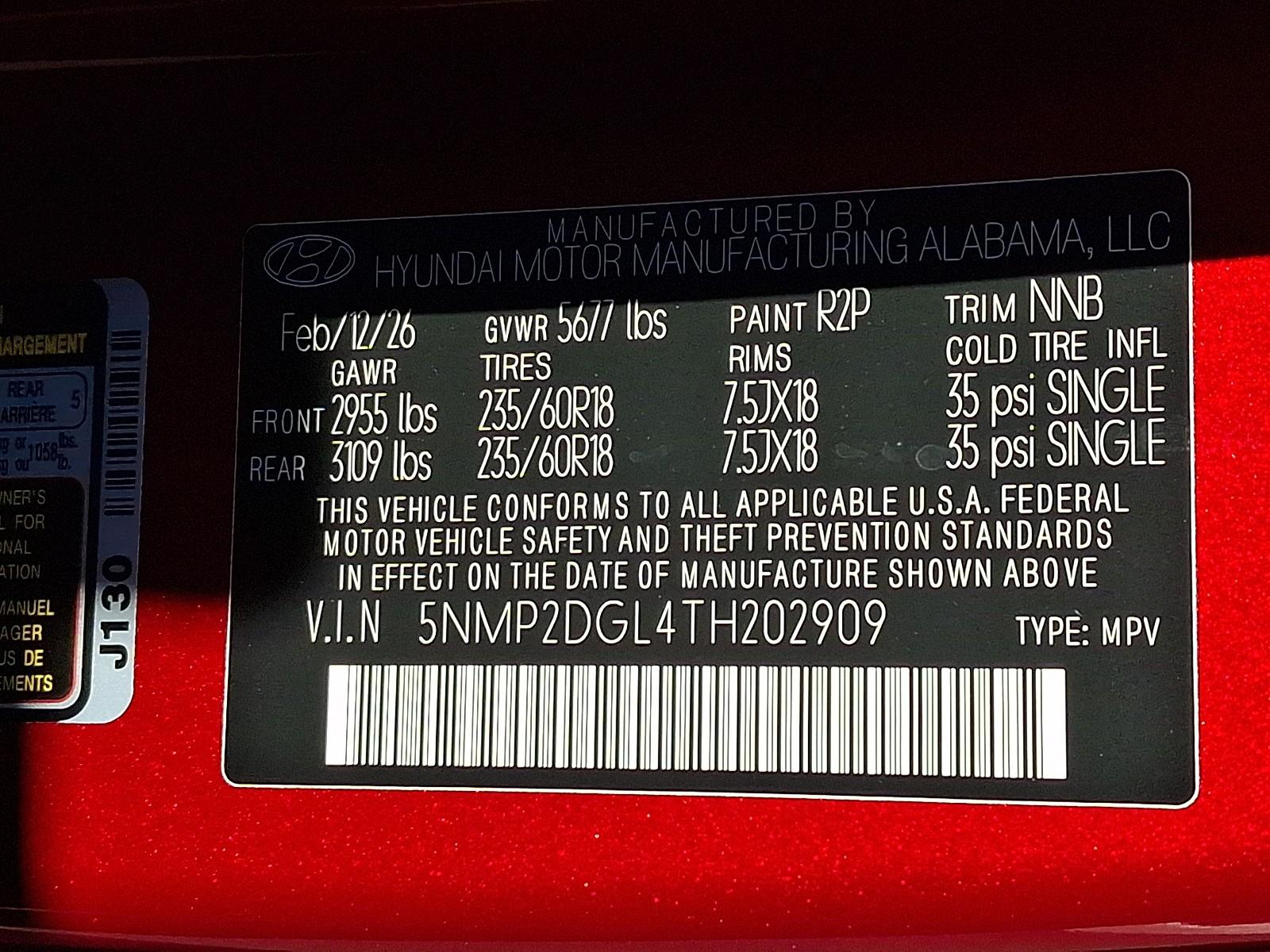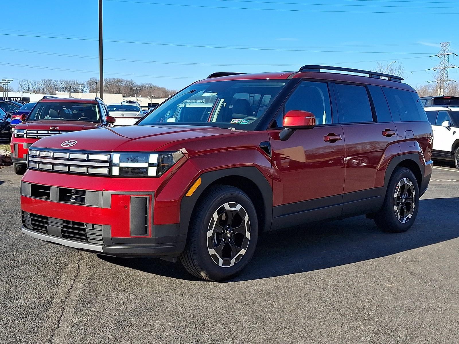 Turn heads in the striking Red 2026 Hyundai Santa Fe SEL with a refined Black interior — a perfect blend of style, comfort and confidence. This AWD SUV comes loaded with advanced safety and control: full-suite airbags, ABS with electronic brake assist, traction and stability control, locking/limited-slip differentials, and vehicle anti-theft protection. Enjoy everyday convenience with keyless entry, remote start with climate control, automatic headlights, heated exterior mirrors and run-flat 18" tires. Inside, settle into heated power seats with lumbar support, leather-wrapped steering, dual-zone climate and steering-wheel controls — plus seating for seven. Backed by Hyundai’s strong coverage (5 years/60K basic, 10 years/100K powertrain, 84 months rust), this Santa Fe SEL is ready for whatever the road brings. Come in today for a test drive — let me show you how it feels behind the wheel.