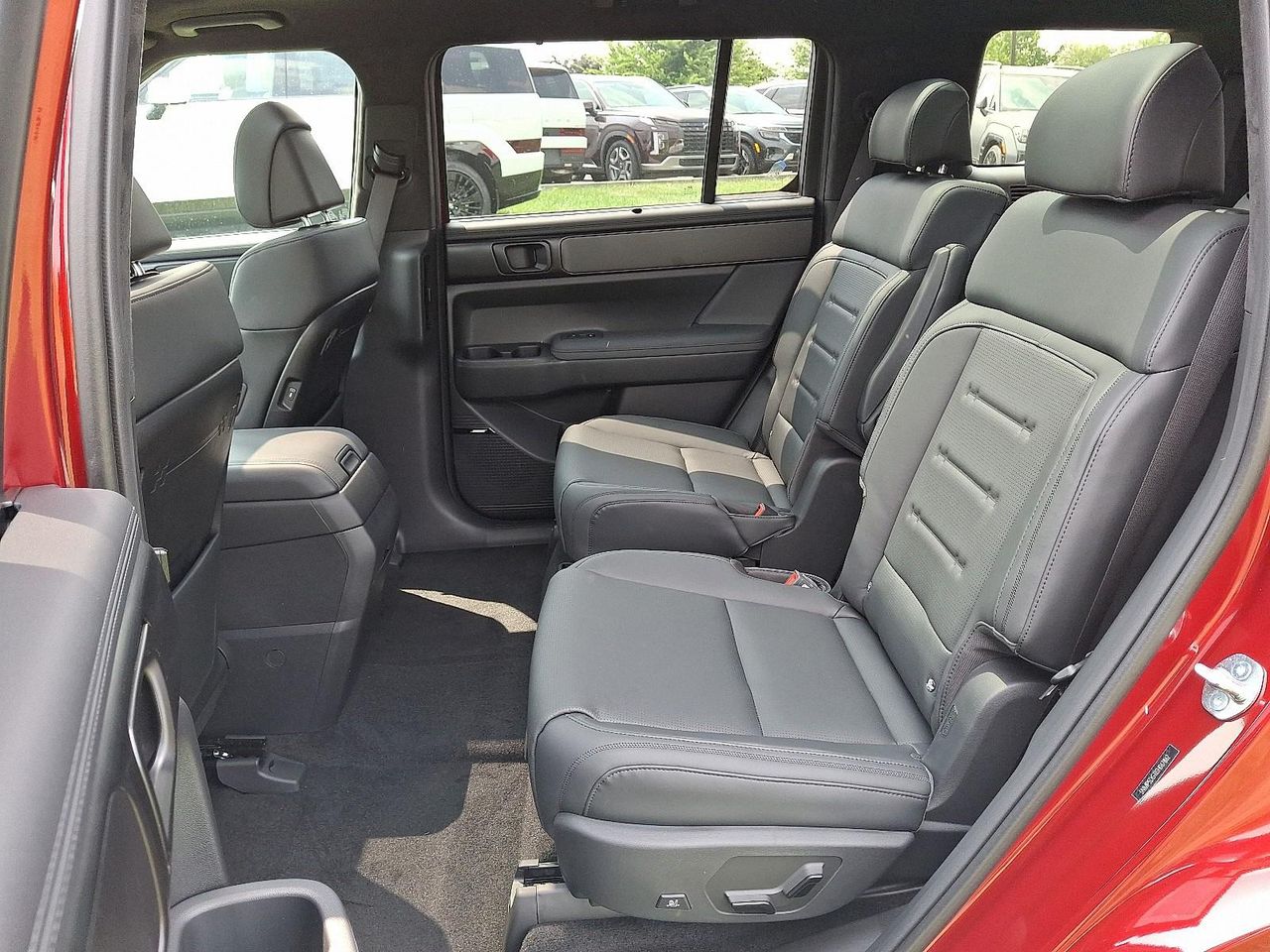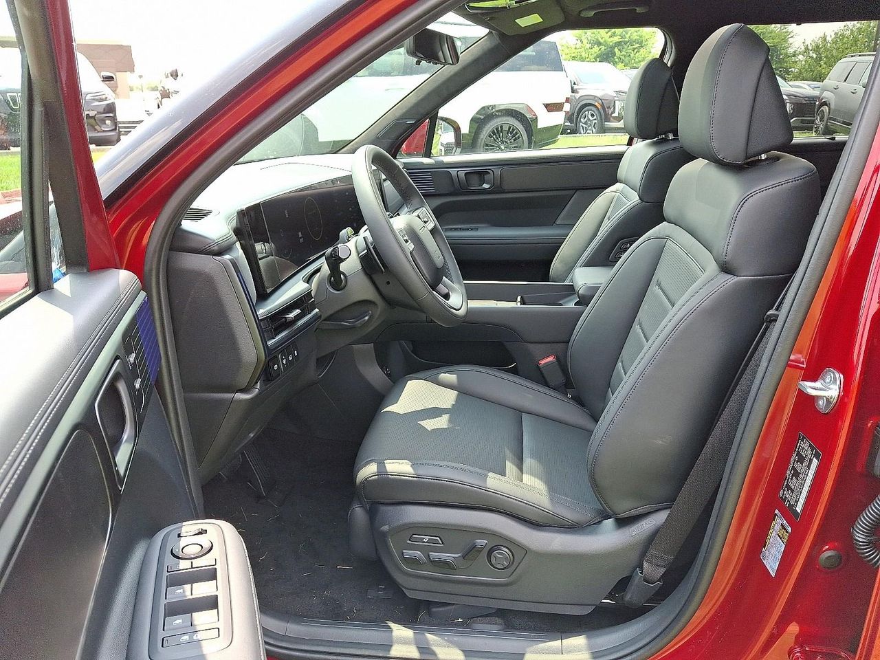 Turn heads in the 2025 Hyundai Santa Fe Hybrid Calligraphy — striking Red exterior matched with a sleek Black leather interior. This premium hybrid pairs impressive efficiency with confident AWD traction and 20" alloy wheels for a smooth, planted ride.