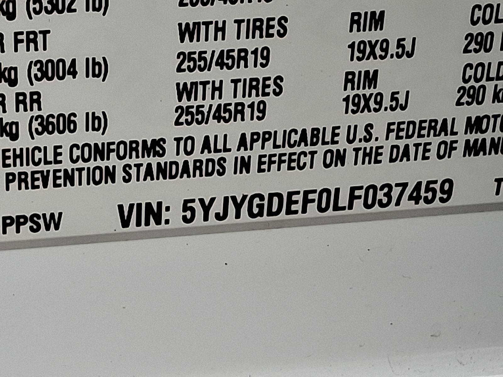 VIN: 5YJYGDEF0LF037459
