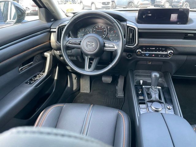 Turn heads in the sleek black-on-black 2023 Mazda 2.5 Turbo — a compact SUV that blends turbocharged performance with all-weather confidence thanks to AWD, sport-ready 20-inch alloy wheels and P245/45R20 tires. Enjoy premium comfort on every drive with heated leather seats, a multi-adjustable power driver seat with lumbar support, leather steering wheel and convenient keyless entry with remote ignition and climate control. Drive confidently with a full safety suite — ABS, traction and vehicle stability control, electronic brake assist and multiple airbags — plus modern conveniences like automatic headlights, tire pressure monitor and steering-wheel controls. Backed by a 36-month/36,000-mile basic warranty and a 60-month/60,000-mile powertrain warranty, this Mazda is ready to perform — schedule your test drive today.