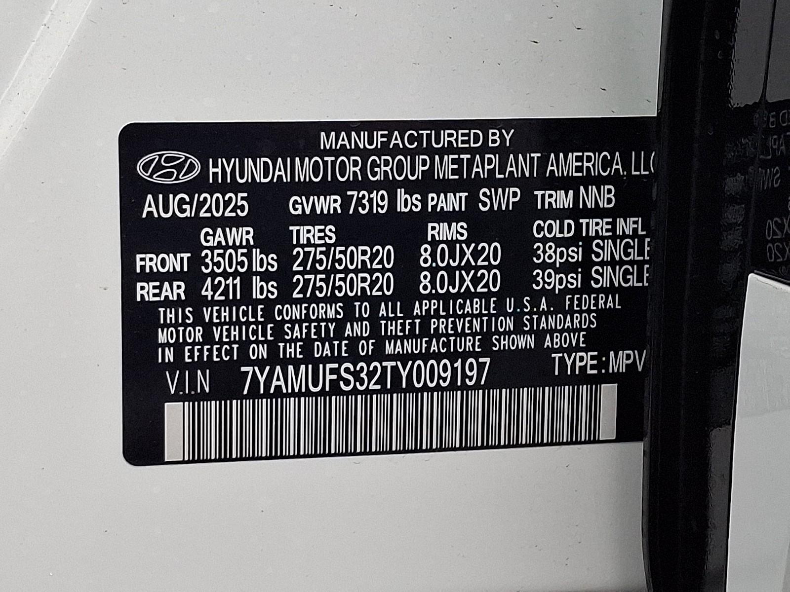 Introducing the 2026 Hyundai IONIQ 9 SEL in crisp White with a sleek Black interior — a roomy, sport SUV that blends luxury, safety and everyday practicality. Equipped with AWD, responsive 275/50R tires and independent suspension for confident handling, plus a comprehensive safety suite (ABS, traction and stability control, multiple airbags, child door locks and vehicle anti-theft). Enjoy premium comfort and convenience: heated leather steering wheel, heated power front seats with lumbar support, separate driver/front-passenger climate controls, Keyless Entry and remote start with climate control — seating for seven and generous interior dimensions complete the package. Backed by Hyundai’s strong coverage (60 months/60k basic, 120 months/100k powertrain, 84 months rust), it’s ready to elevate every drive — come in today for a test drive.