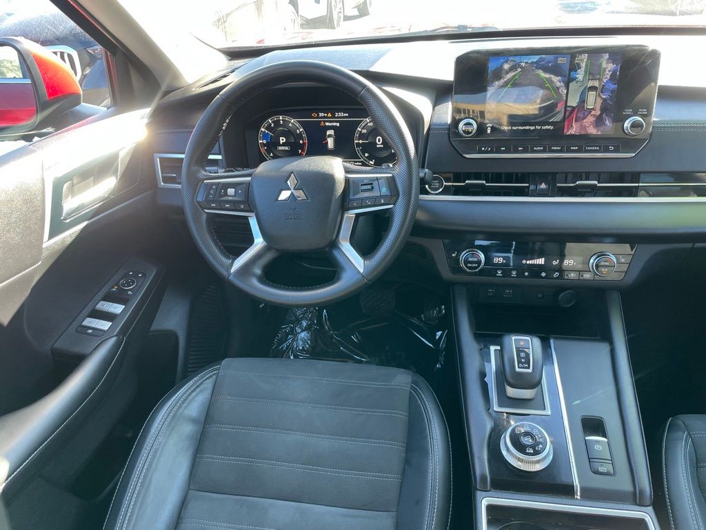 Turn heads in the 2022 Mitsubishi Black Edition — a striking Red exterior wrapped around a sleek Black leather interior with chrome alloy wheels. Built for confidence, it comes standard with AWD, ABS, traction and stability control, comprehensive airbags and anti-theft protection. Comfort and convenience include heated front seats and steering wheel, power-adjustable driver’s seat with lumbar, dual-zone climate with remote start, power sunroof, and keyless entry/start. Backed by Mitsubishi’s strong coverage — 60 months/60K basic, 120 months/100K powertrain and 84 months/100K rust — it’s a stylish, safe and worry-free choice.