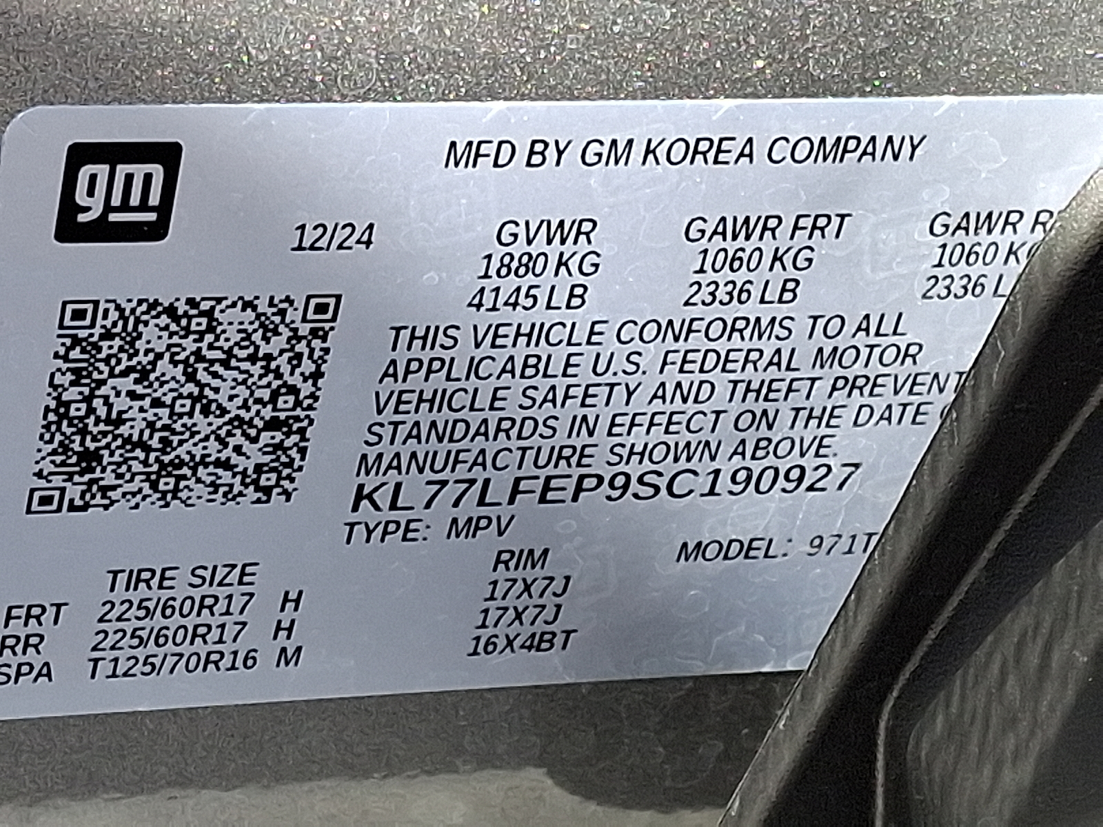 VIN: KL77LFEP9SC190927