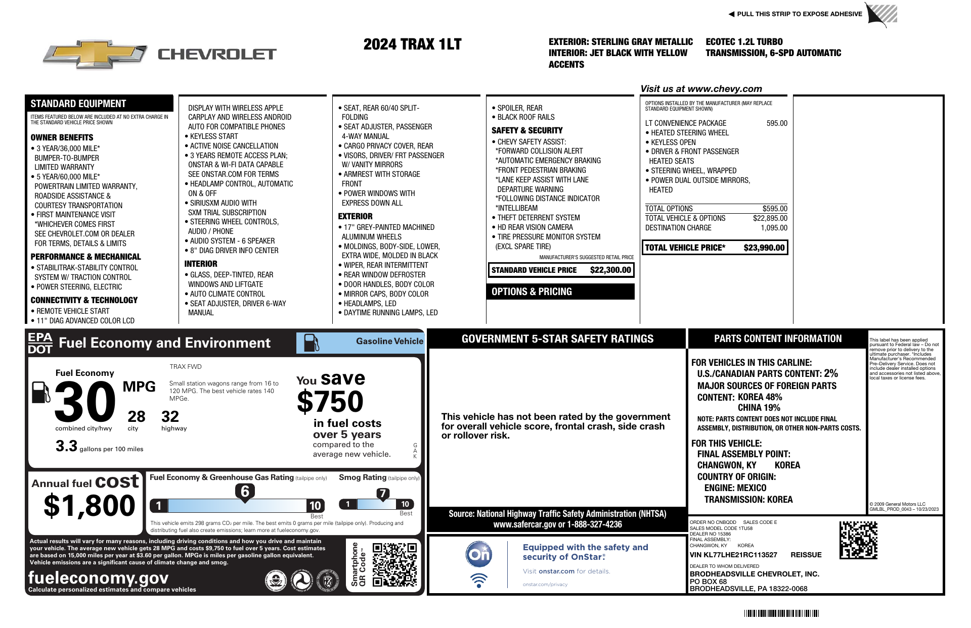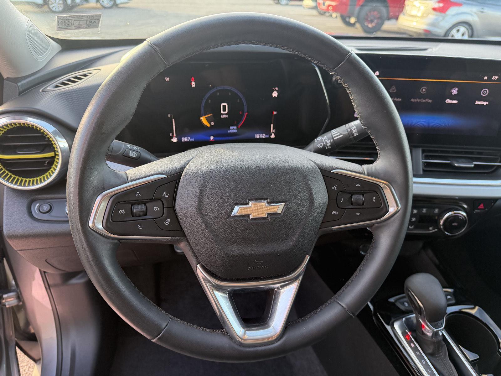 Step into the bold 2024 Chevrolet Trax LT — a compact SUV that combines city-smart style with real capability. Dressed in sleek Gray with an eye-catching Yellow interior, the Trax LT pairs available AWD, traction control and locking differential for confident handling in any weather. Enjoy premium comfort with heated leather front seats, a heated leather steering wheel and driver/passenger power adjustments, plus convenient tech like keyless entry, remote start with climate control and a premium sound system with subwoofer. Safety is built in — comprehensive airbags, ABS, stability control and an electronic parking aid — and Chevy’s solid warranties (36/36 basic, 60/60 powertrain, 72/100 rust) give you extra peace of mind. Ready to see it in person? Schedule a test drive today.