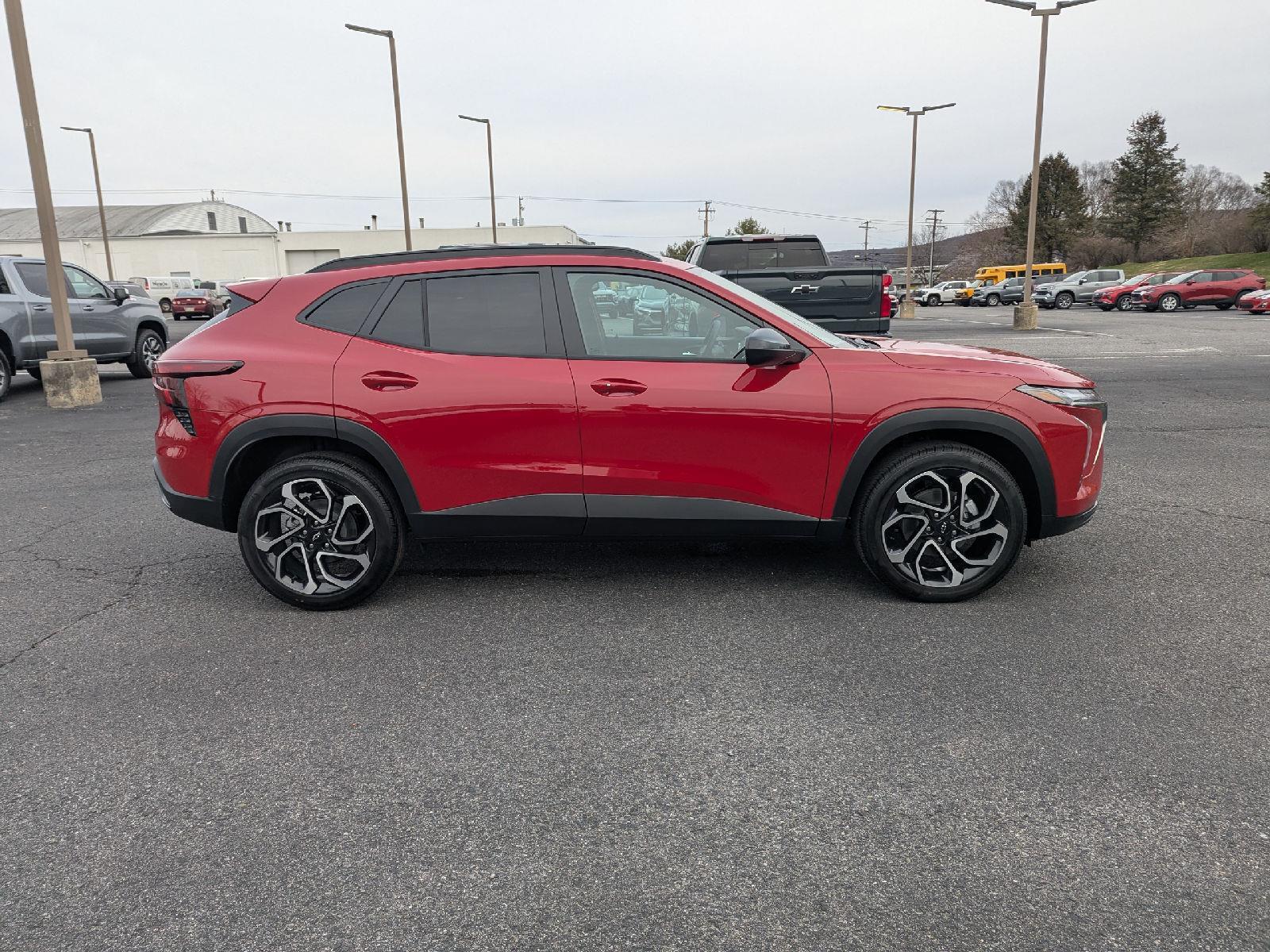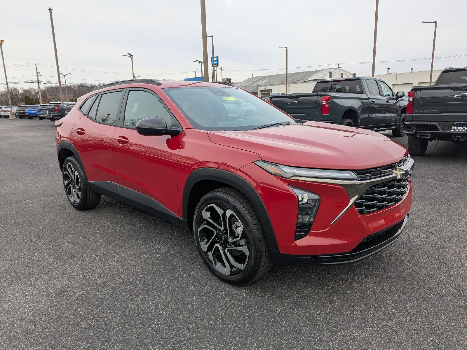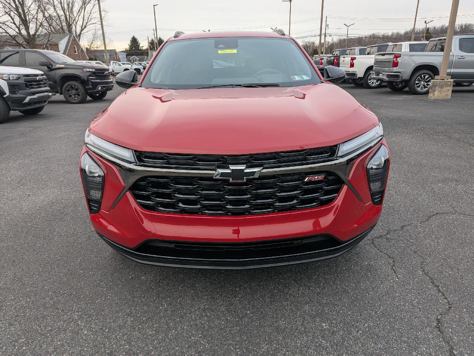 Turn heads in the 2026 Chevrolet Trax 2RS — a bold red compact SUV with a sleek black interior that blends sporty style and everyday practicality. Enjoy confident handling from 19-inch performance tires (245/45R19), independent front/rear suspension, coil springs and four-wheel ABS with all-disc brakes, plus standard driver and passenger airbags for peace of mind. Cleverly packaged to seat five, the Trax delivers roomy comfort with 41.9" front legroom and 38.7" rear legroom, generous shoulder space and a 106" wheelbase for a stable, planted ride. Backed by Chevrolet’s warranties — 3 years/36,000 miles basic, 5 years/60,000 miles powertrain and 6 years/100,000 miles rust — it’s a smart, confident choice. Ready for a test drive? Come see it today.
