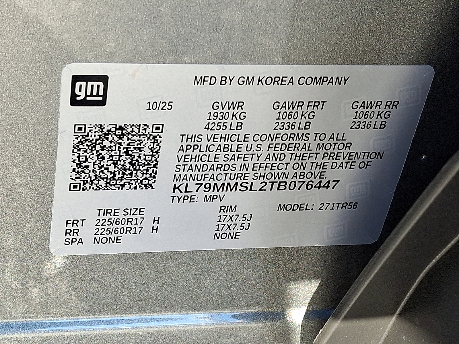 VIN: KL79MMSL2TB076447
