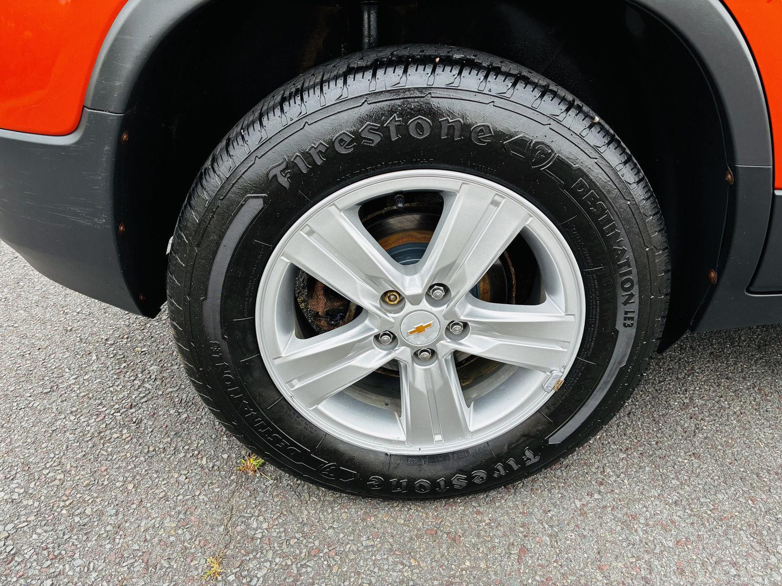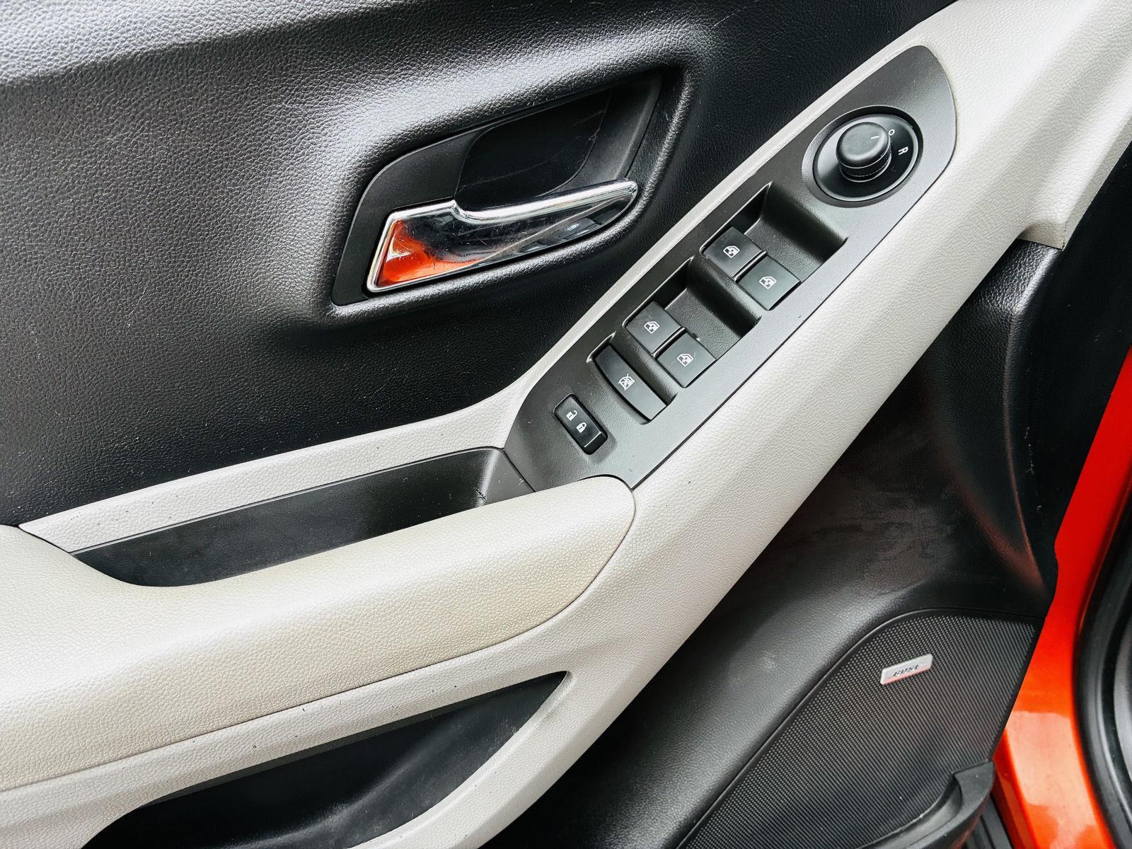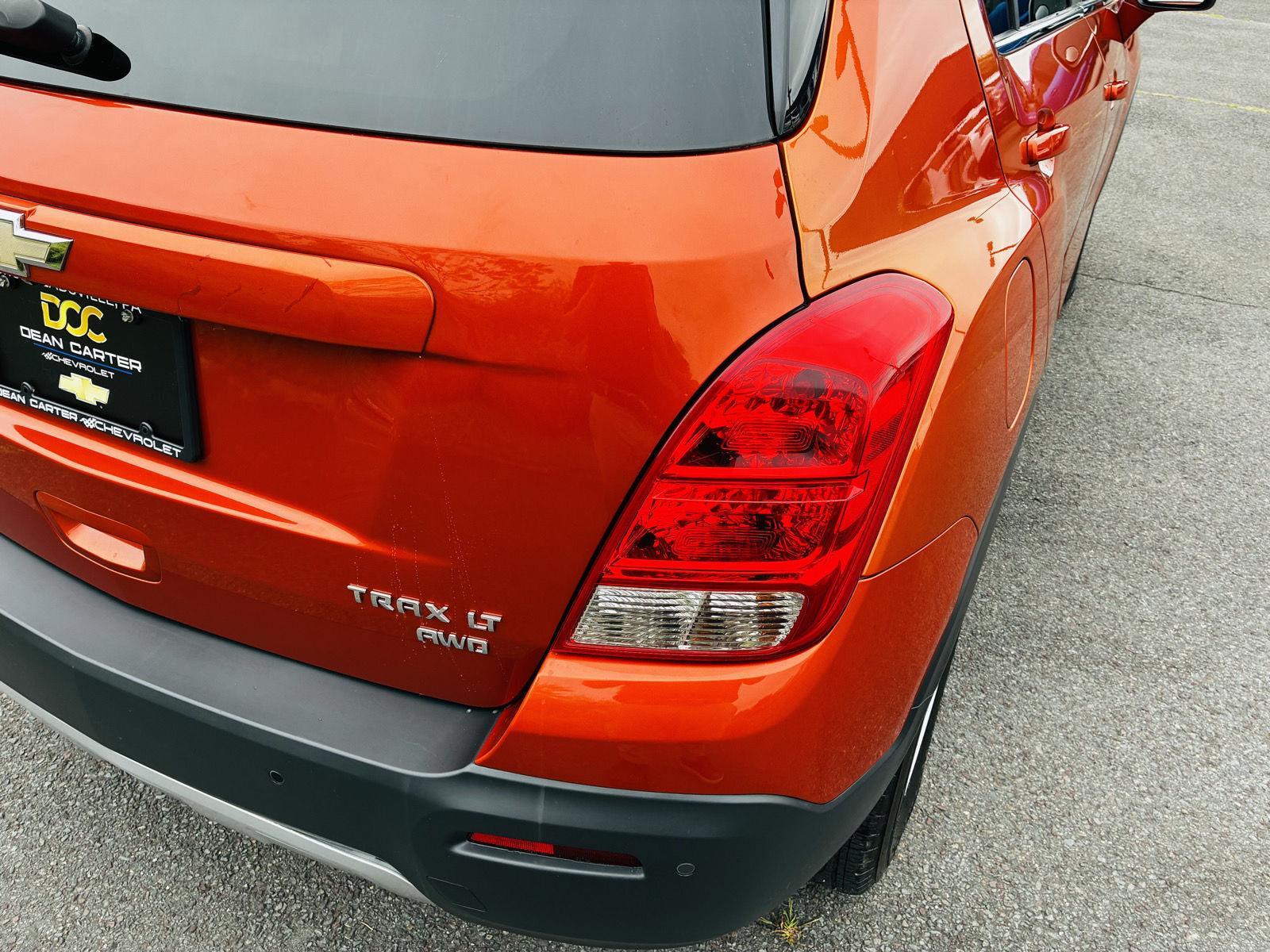 Turn heads in this 2015 Chevrolet Trax LT — striking Orange exterior with a sleek Black interior. Compact and confident with AWD, ABS, traction and stability control, full airbag protection and child-safety locks for peace of mind. Enjoy upgraded comforts like a power sunroof, navigation, leather-wrapped steering wheel with mounted controls and power-adjustable seats, plus practical cargo space (18.7 cu ft) and alloy wheels. Backed by factory coverage (36 months/36,000 miles basic; 60 months/100,000 miles powertrain) — stop by today and take it for a test drive.