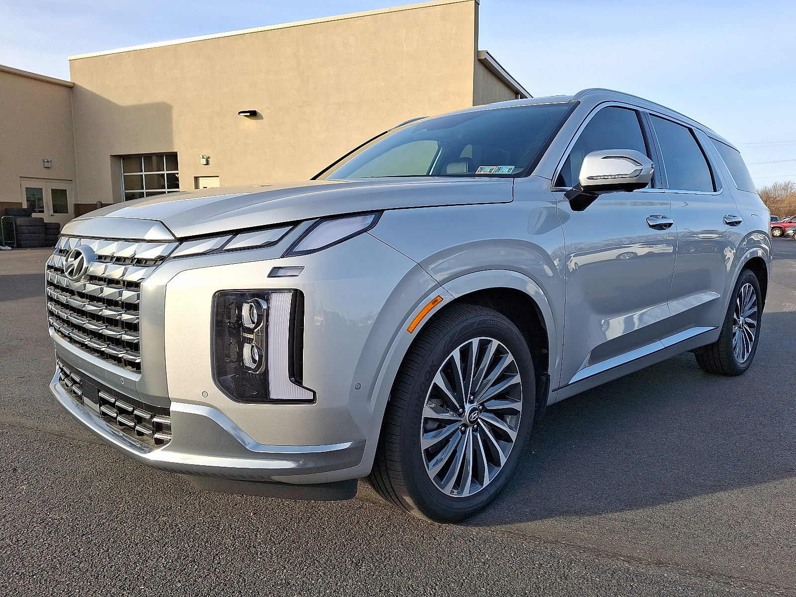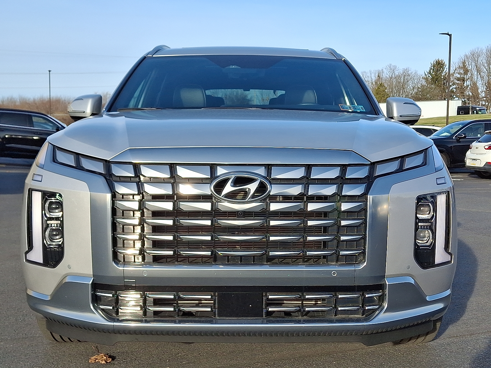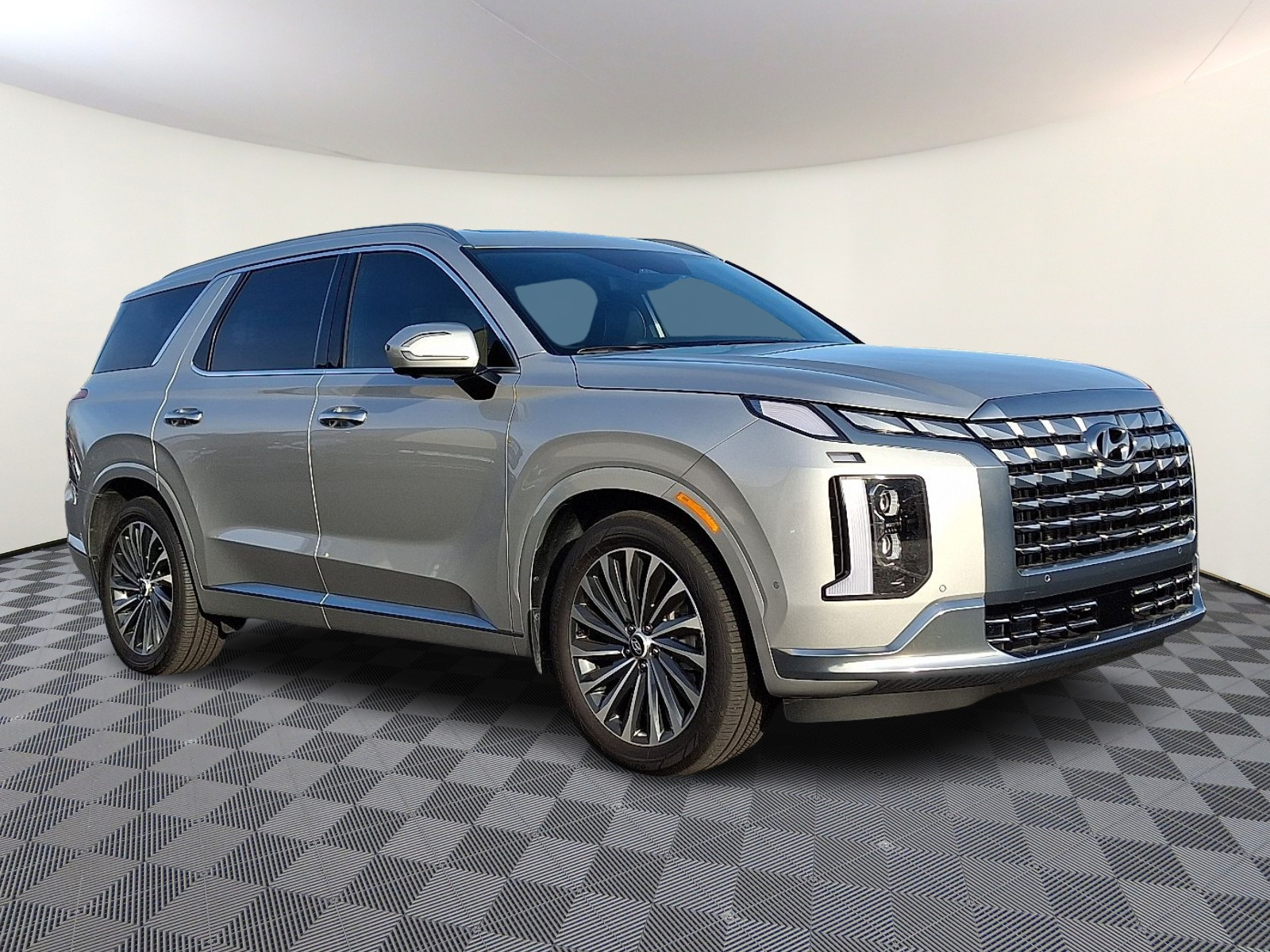 Introducing the 2025 Hyundai Palisade Calligraphy in sleek Silver with a refined Black leather interior — where premium comfort meets family-ready capability. Enjoy heated and ventilated front seats, a heated leather steering wheel, intuitive navigation and keyless entry with remote start/climate control for effortless convenience. Confident on any road with standard AWD, traction/vehicle stability control, ABS and a full suite of airbags and safety systems, plus a power sunroof, 20-inch alloy wheels and roomy 7-passenger seating. Backed by Hyundai’s strong coverage — 5 years/60,000-mile basic and 10 years/100,000-mile powertrain warranties — this Palisade Calligraphy is luxury, safety and value in one stylish package. Stop by today and take it for a test drive.