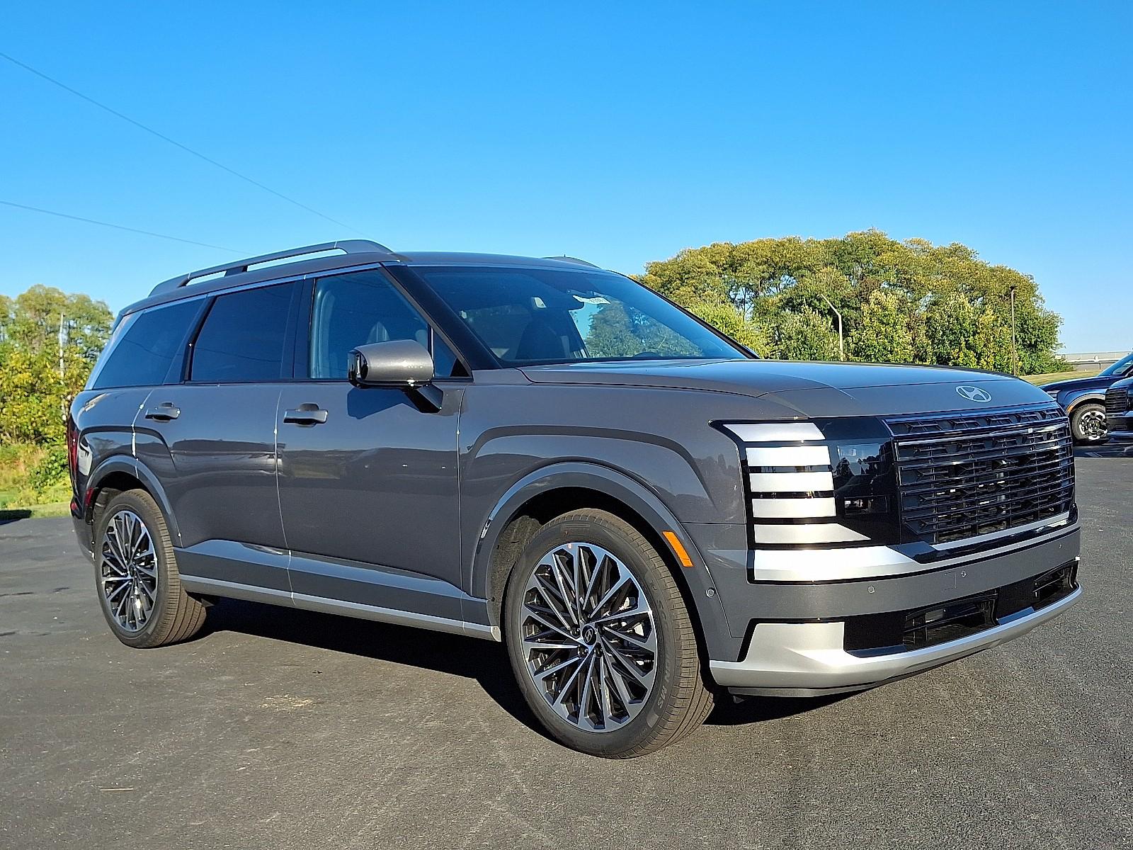 Meet the 2026 Hyundai Palisade Calligraphy — finished in sophisticated Gray with a sleek Black interior. This top-trim Palisade pairs upscale touches (quilted leather, refined Calligraphy accents) with modern tech — a large infotainment display, digital instrument cluster and advanced driver-assist features — while offering roomy three-row comfort for family and weekend adventures. Confident on the road thanks to capable performance and available AWD, it also comes backed by Hyundai’s comprehensive basic, powertrain and rust warranties (ask for exact terms). Stop by for a private walk-around and test drive today.