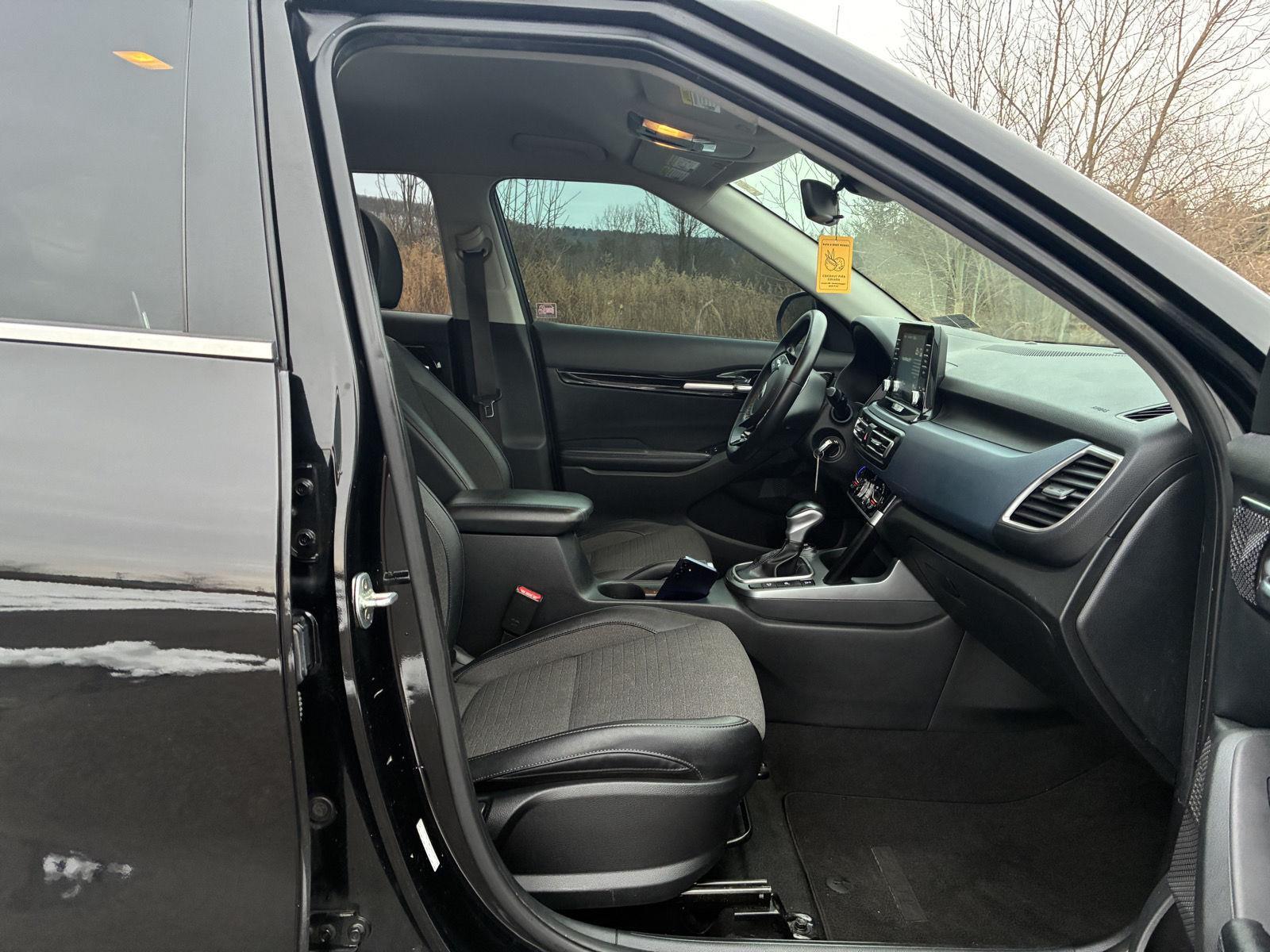 Stand out in this 2021 KIA Seltos S — a bold purple exterior paired with a refined black interior for crossover style and presence. Built for peace of mind, it comes loaded with comprehensive safety gear (driver, passenger, front-side and curtain airbags, ABS, traction control, child locks and vehicle anti‑theft) plus fog lights for confident driving in mixed conditions. Enjoy everyday comfort and control with cruise control, a telescopic steering column, power windows and grippy P235/45R18 tires over independent suspension and 4‑wheel ABS. Roomy five‑passenger seating and a practical 103.5" wheelbase make it ideal for city runs or weekend escapes — backed by Kia’s strong coverage: 60 months/60,000-mile basic, 120 months/100,000-mile powertrain and rust protection. Ready for a test drive today.