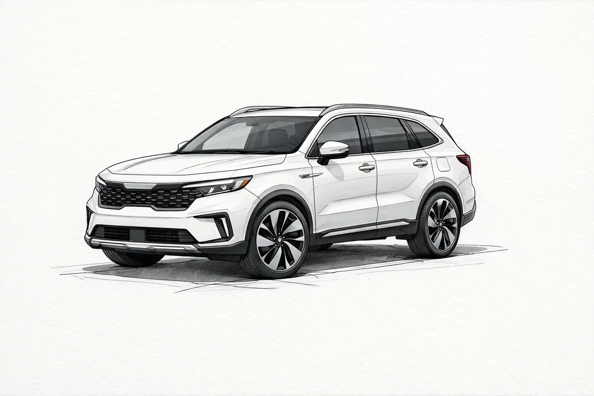 2026 KIA Sorento Plug‑in Hybrid SX Prestige — White exterior, Black leather interior.