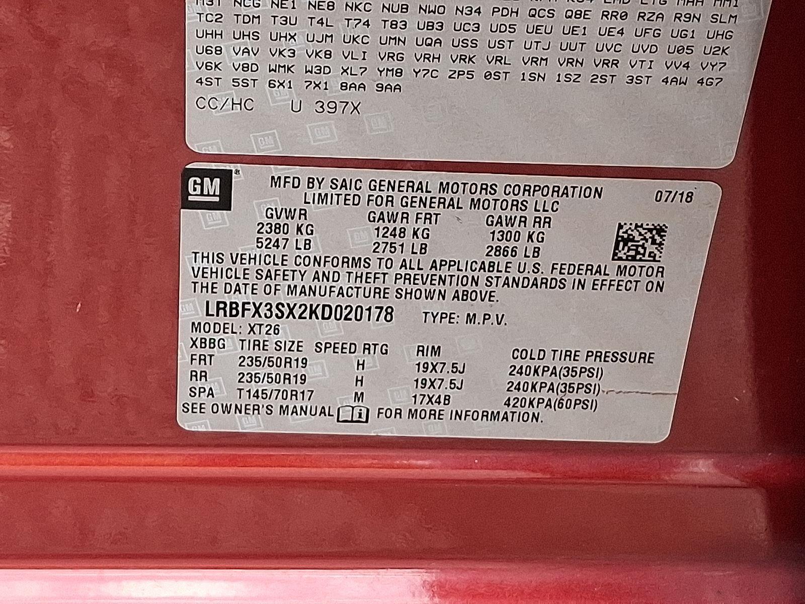 VIN: LRBFX3SX2KD020178