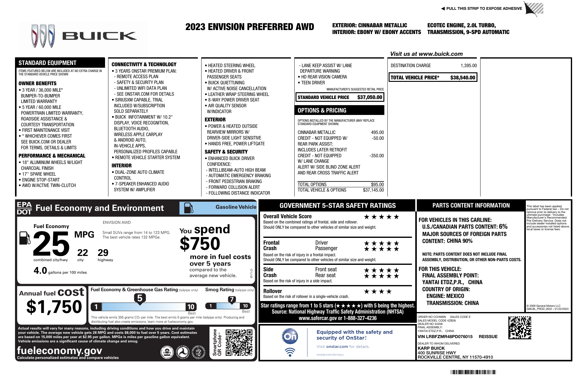 Safety is comprehensive — multiple airbags, side head curtain protection, child safety locks and vehicle anti‑theft features — plus strong factory coverage: 3 years/36,000 miles basic, 5 years/60,000 miles powertrain, and 6 years/100,000 miles rust. Ready to experience it? Come in for a test drive and feel the Envision difference today.