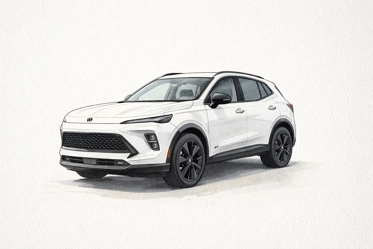 Meet the 2026 Buick Envision Sport Touring in crisp White — a compact SUV that blends athletic style with everyday comfort. Standard 20-inch P245/45R20 tires, sport-tuned coil suspension and rack‑and‑pinion steering give responsive, confident handling, while 4‑wheel ABS and front/rear disc brakes deliver sure-footed stopping power. Inside, there’s room for five with generous front (40.4 in) and rear (39.3 in) legroom and plenty of shoulder and hip space, all riding on a stable 109‑inch wheelbase. Safety comes standard with driver and passenger airbags plus ABS, and you’ll drive protected by Buick’s warranties: 3 years/36,000 miles basic, 5 years/60,000 miles powertrain, and 6 years/100,000 miles rust. Stop by today for a closer look and a test drive — this Envision is ready to impress.