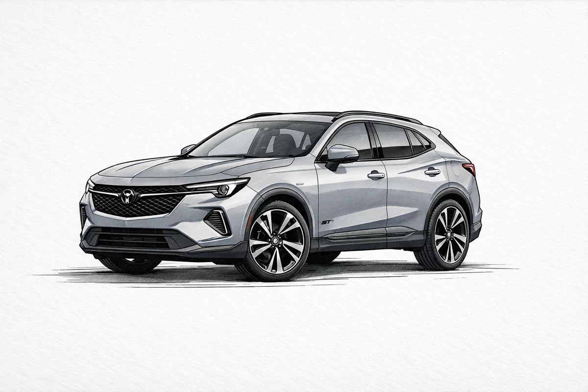 Meet the 2026 Buick Envision Sport Touring in striking Gray — a compact SUV that pairs athletic styling with premium comfort. Sport-tuned handling and confidence-inspiring braking come standard: P245/45R20 tires, rack-and-pinion steering, 4-wheel ABS and four-wheel disc brakes, plus driver and passenger airbags. The cabin is surprisingly roomy for its class — front legroom 40.4" and rear legroom 39.3", with ample head- and shoulder-room for five passengers. At 182.7" long with a 109" wheelbase and a 3,964 lb curb weight, it’s stable on the road yet easy to maneuver around town. Backed by comprehensive warranties (36/36 basic, 60/60 powertrain, 72/100 rust), the Envision Sport Touring is ready for your next drive — come test drive one today.